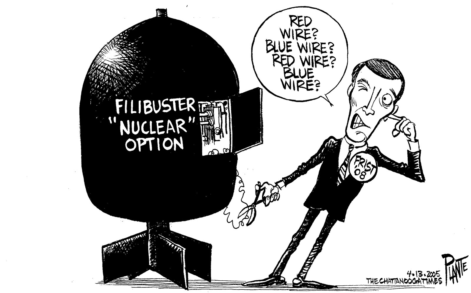 Tags/Keywords 2008 Presidential, Bill Frist, Filibuster, Nuclear Option, FILE: PlantB20050415 Reprint This CartoonBuy A PrintBuy The Original REPRINT THIS CARTOON Fill out the info below and I'll be in touch ASAP Your Name (required) Your Email (required) Details, Print, Digital, Circulation, etc. Please leave this field empty. BUY A PRINT OF THIS CARTOON Fill out the info below and I'll be in touch ASAP Your Name(required) Your Email(required) Details, Number of copies, Questions. Please leave this field empty. BUY THE ORIGINAL Originals may or may not be available. Fill out the info below and I'll be in touch ASAP Your Name (required) Your Email (required) Your Message Please leave this field empty.