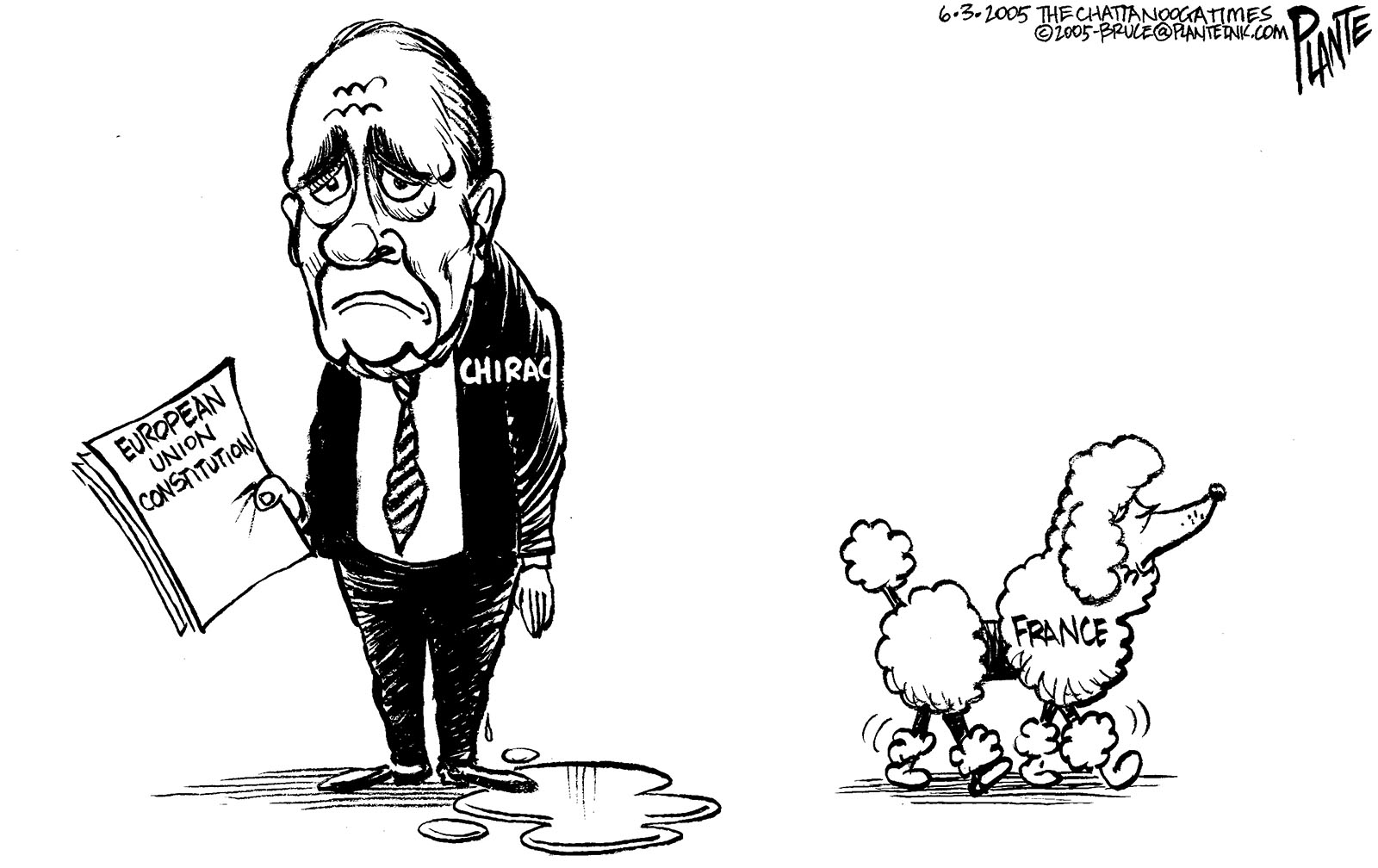 Tags/Keywords Chirac, E. U., France, FILE: PlantB20050604 Reprint This CartoonBuy A PrintBuy The Original REPRINT THIS CARTOON Fill out the info below and I'll be in touch ASAP Your Name (required) Your Email (required) Details, Print, Digital, Circulation, etc. Please leave this field empty. BUY A PRINT OF THIS CARTOON Fill out the info below and I'll be in touch ASAP Your Name(required) Your Email(required) Details, Number of copies, Questions. Please leave this field empty. BUY THE ORIGINAL Originals may or may not be available. Fill out the info below and I'll be in touch ASAP Your Name (required) Your Email (required) Your Message Please leave this field empty.