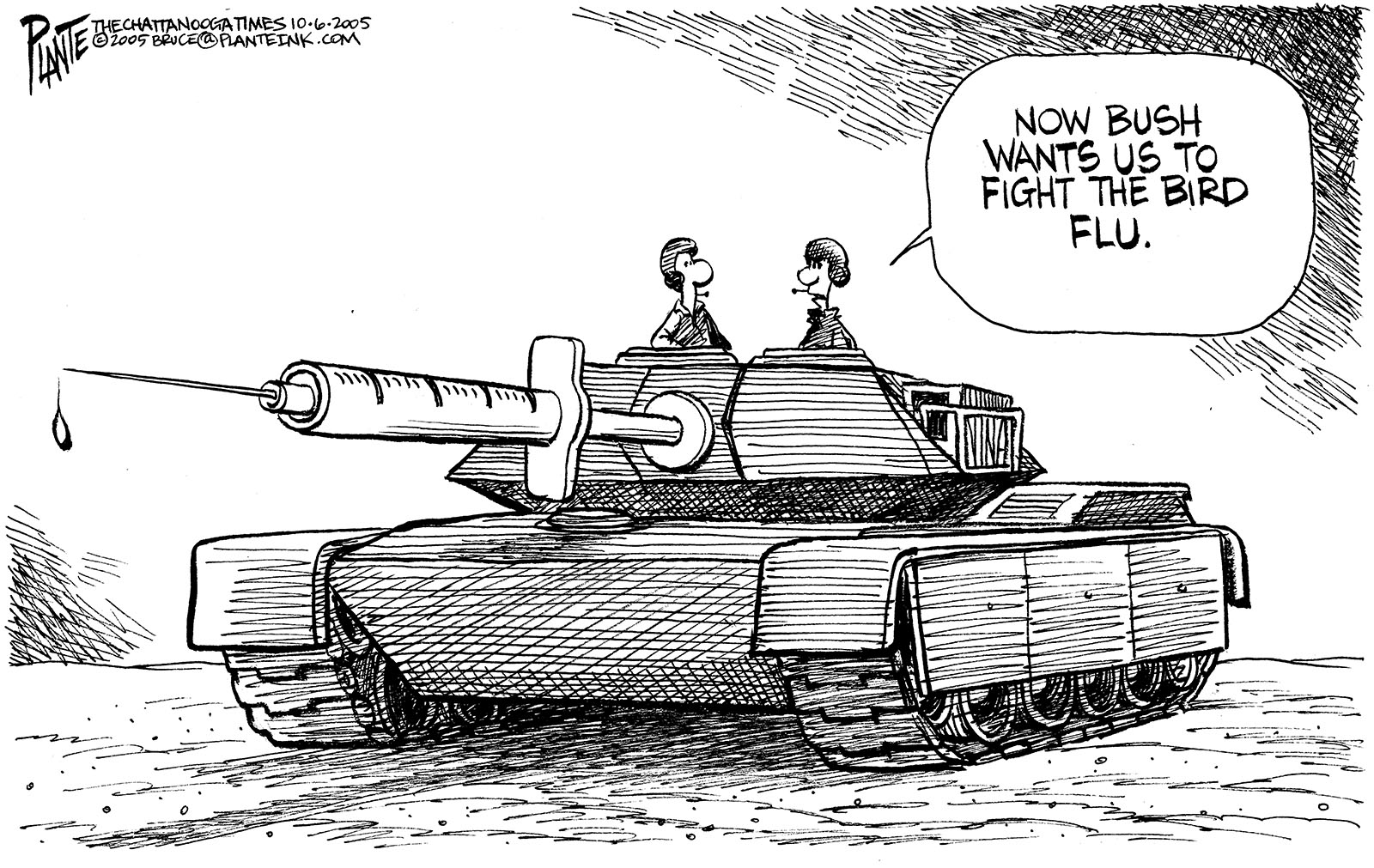 Tags/Keywords Bird flu, Bush bird flu, Military flu, Pandemic, FILE: PlantB20051007 Reprint This CartoonBuy A PrintBuy The Original REPRINT THIS CARTOON Fill out the info below and I'll be in touch ASAP Your Name (required) Your Email (required) Details, Print, Digital, Circulation, etc. Please leave this field empty. BUY A PRINT OF THIS CARTOON Fill out the info below and I'll be in touch ASAP Your Name(required) Your Email(required) Details, Number of copies, Questions. Please leave this field empty. BUY THE ORIGINAL Originals may or may not be available. Fill out the info below and I'll be in touch ASAP Your Name (required) Your Email (required) Your Message Please leave this field empty.