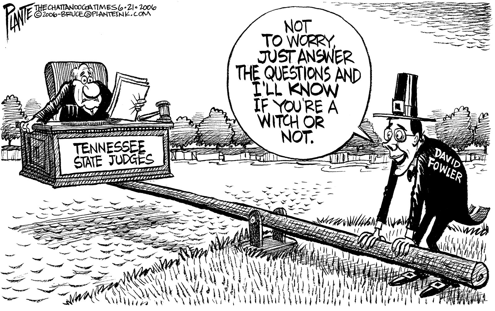 Tags/Keywords Tennessee, Tennessee Senator David Fowler, Tennessee State Judges, Tennessee State Judiciary, TN Sen. David Fowler, FILE: PlantB20060622 Reprint This CartoonBuy A PrintBuy The Original REPRINT THIS CARTOON Fill out the info below and I'll be in touch ASAP Your Name (required) Your Email (required) Details, Print, Digital, Circulation, etc. Please leave this field empty. BUY A PRINT OF THIS CARTOON Fill out the info below and I'll be in touch ASAP Your Name(required) Your Email(required) Details, Number of copies, Questions. Please leave this field empty. BUY THE ORIGINAL Originals may or may not be available. Fill out the info below and I'll be in touch ASAP Your Name (required) Your Email (required) Your Message Please leave this field empty.