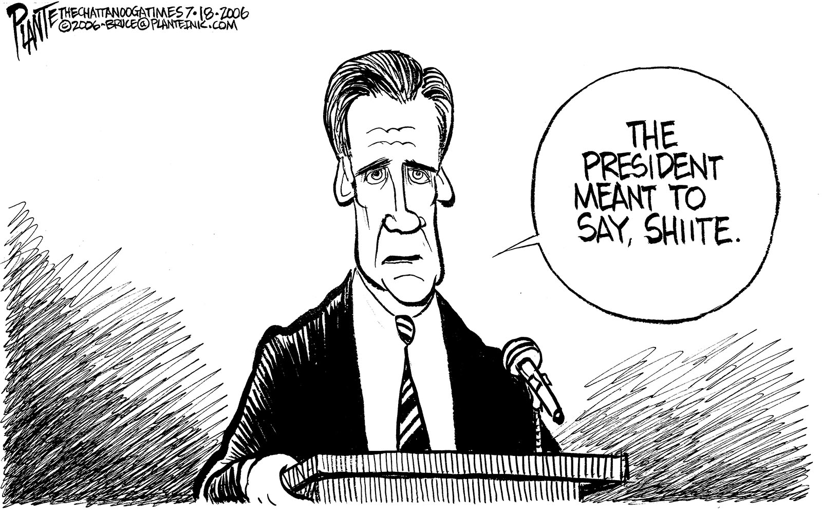 Tags/Keywords G8, Gaff, George W. Bush, Slur, Tony Snow, FILE: PlantB20060719 Reprint This CartoonBuy A PrintBuy The Original REPRINT THIS CARTOON Fill out the info below and I'll be in touch ASAP Your Name (required) Your Email (required) Details, Print, Digital, Circulation, etc. Please leave this field empty. BUY A PRINT OF THIS CARTOON Fill out the info below and I'll be in touch ASAP Your Name(required) Your Email(required) Details, Number of copies, Questions. Please leave this field empty. BUY THE ORIGINAL Originals may or may not be available. Fill out the info below and I'll be in touch ASAP Your Name (required) Your Email (required) Your Message Please leave this field empty.