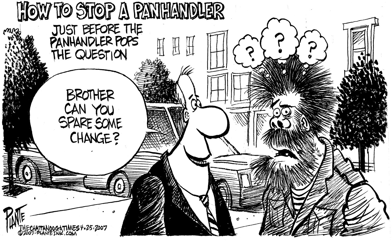 Tags/Keywords Chattanooga, Chattanooga City Council, Panhandling Law, FILE: PlantB20070426 Reprint This CartoonBuy A PrintBuy The Original REPRINT THIS CARTOON Fill out the info below and I'll be in touch ASAP Your Name (required) Your Email (required) Details, Print, Digital, Circulation, etc. Please leave this field empty. BUY A PRINT OF THIS CARTOON Fill out the info below and I'll be in touch ASAP Your Name(required) Your Email(required) Details, Number of copies, Questions. Please leave this field empty. BUY THE ORIGINAL Originals may or may not be available. Fill out the info below and I'll be in touch ASAP Your Name (required) Your Email (required) Your Message Please leave this field empty.