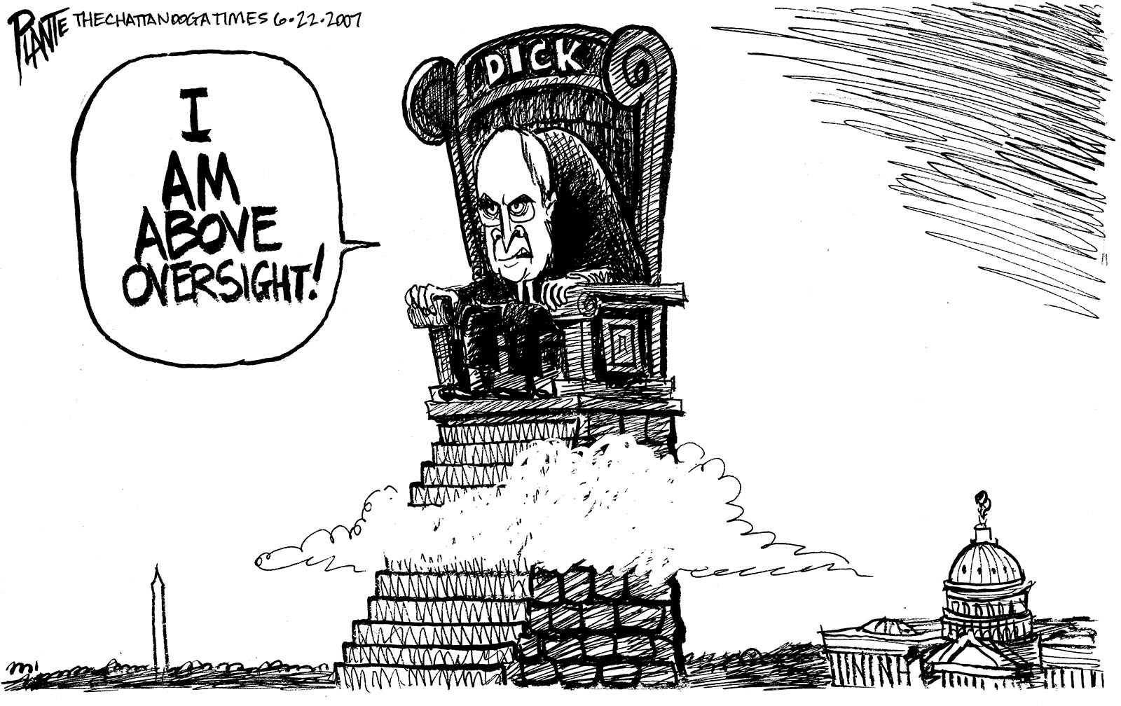 Tags/Keywords Dick Cheney, Executive Branch, National Archives, U.S. Justice Department, Vice President Cheney, FILE: PlantB20070623 Reprint This CartoonBuy A PrintBuy The Original REPRINT THIS CARTOON Fill out the info below and I'll be in touch ASAP Your Name (required) Your Email (required) Details, Print, Digital, Circulation, etc. Please leave this field empty. BUY A PRINT OF THIS CARTOON Fill out the info below and I'll be in touch ASAP Your Name(required) Your Email(required) Details, Number of copies, Questions. Please leave this field empty. BUY THE ORIGINAL Originals may or may not be available. Fill out the info below and I'll be in touch ASAP Your Name (required) Your Email (required) Your Message Please leave this field empty.