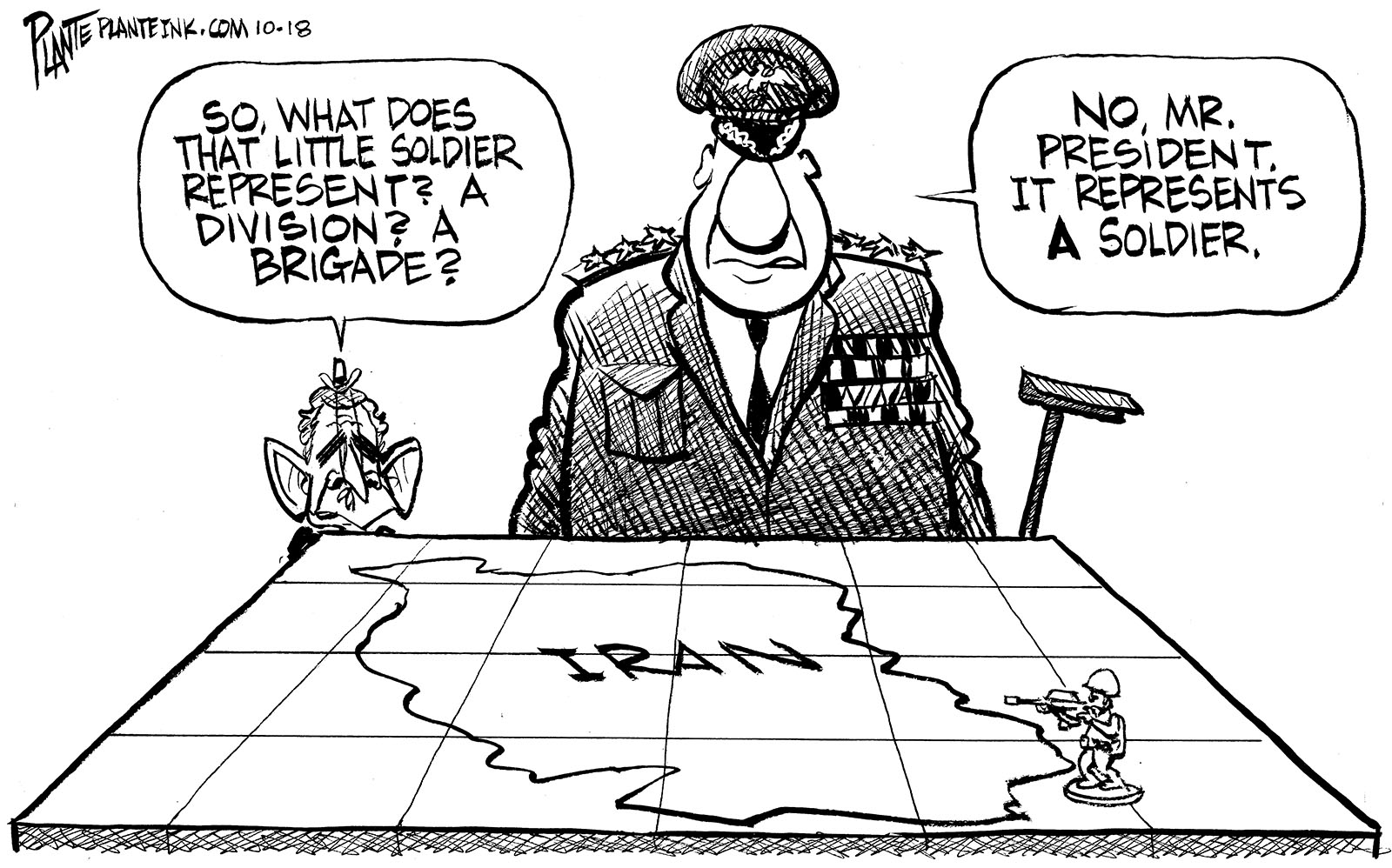 Tags/Keywords Bush Administration, George W. Bush, Iran, Iraq War, military, recruit shortage, soldier, troops, FILE: PlantB20071021 Reprint This CartoonBuy A PrintBuy The Original REPRINT THIS CARTOON Fill out the info below and I'll be in touch ASAP Your Name (required) Your Email (required) Details, Print, Digital, Circulation, etc. Please leave this field empty. BUY A PRINT OF THIS CARTOON Fill out the info below and I'll be in touch ASAP Your Name(required) Your Email(required) Details, Number of copies, Questions. Please leave this field empty. BUY THE ORIGINAL Originals may or may not be available. Fill out the info below and I'll be in touch ASAP Your Name (required) Your Email (required) Your Message Please leave this field empty.