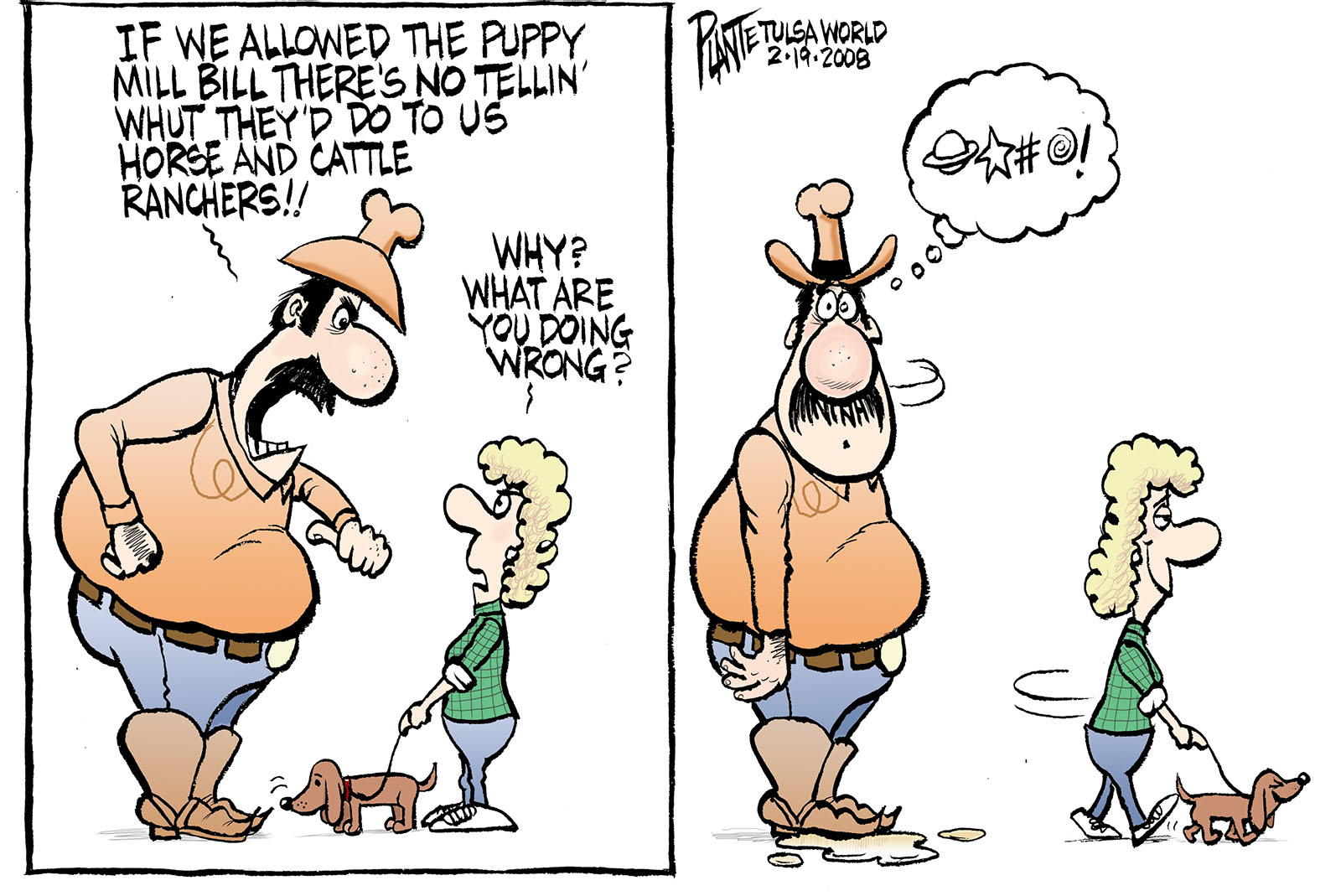 Tags/Keywords cattle ranchers, Oklahoma, Puppy Mills, FILE: PlantB20080220 Reprint This CartoonBuy A PrintBuy The Original REPRINT THIS CARTOON Fill out the info below and I'll be in touch ASAP Your Name (required) Your Email (required) Details, Print, Digital, Circulation, etc. Please leave this field empty. BUY A PRINT OF THIS CARTOON Fill out the info below and I'll be in touch ASAP Your Name(required) Your Email(required) Details, Number of copies, Questions. Please leave this field empty. BUY THE ORIGINAL Originals may or may not be available. Fill out the info below and I'll be in touch ASAP Your Name (required) Your Email (required) Your Message Please leave this field empty.