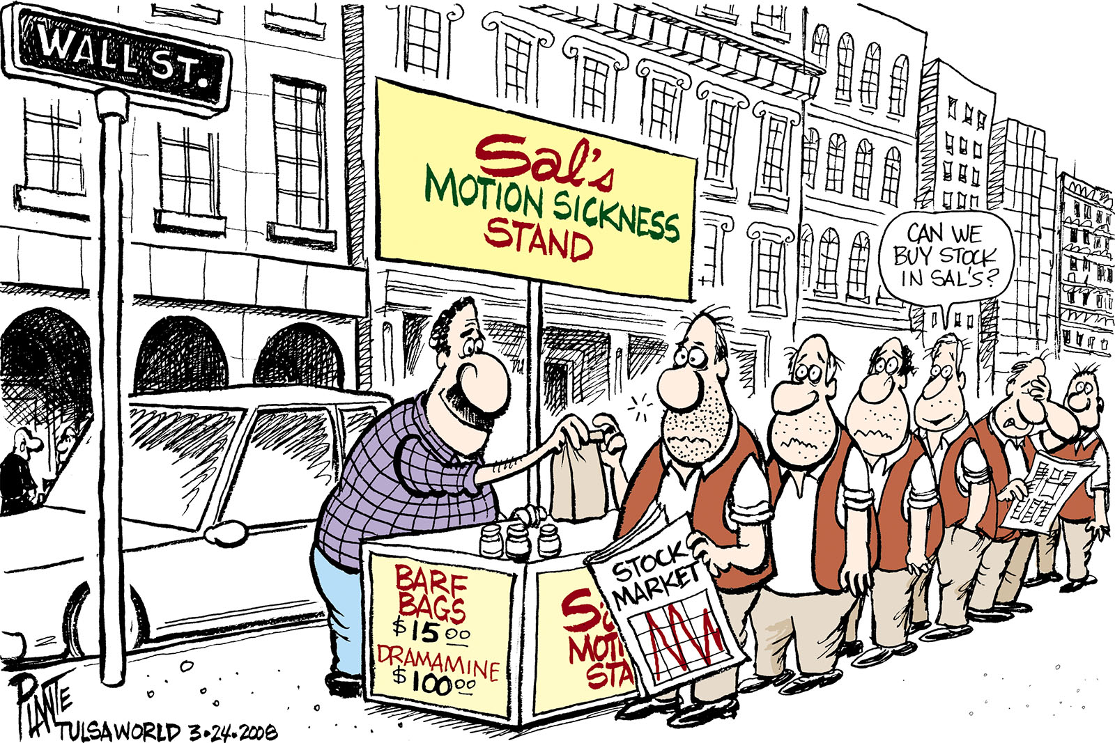 Tags/Keywords Economy, motion sickness, stock market, Wall Street, FILE: PlantB20080324 Reprint This CartoonBuy A PrintBuy The Original REPRINT THIS CARTOON Fill out the info below and I'll be in touch ASAP Your Name (required) Your Email (required) Details, Print, Digital, Circulation, etc. Please leave this field empty. BUY A PRINT OF THIS CARTOON Fill out the info below and I'll be in touch ASAP Your Name(required) Your Email(required) Details, Number of copies, Questions. Please leave this field empty. BUY THE ORIGINAL Originals may or may not be available. Fill out the info below and I'll be in touch ASAP Your Name (required) Your Email (required) Your Message Please leave this field empty.