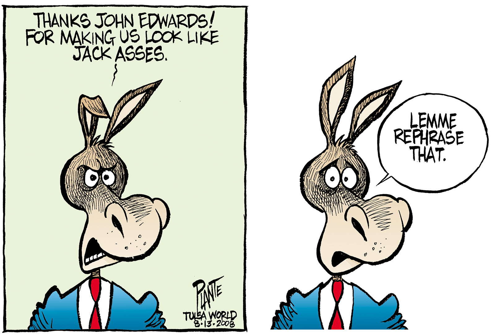 Tags/Keywords Democratic Party, Presidential Campaign 2008, Sen. John Edwards, FILE: PlantB20080814 Reprint This CartoonBuy A PrintBuy The Original REPRINT THIS CARTOON Fill out the info below and I'll be in touch ASAP Your Name (required) Your Email (required) Details, Print, Digital, Circulation, etc. Please leave this field empty. BUY A PRINT OF THIS CARTOON Fill out the info below and I'll be in touch ASAP Your Name(required) Your Email(required) Details, Number of copies, Questions. Please leave this field empty. BUY THE ORIGINAL Originals may or may not be available. Fill out the info below and I'll be in touch ASAP Your Name (required) Your Email (required) Your Message Please leave this field empty.
