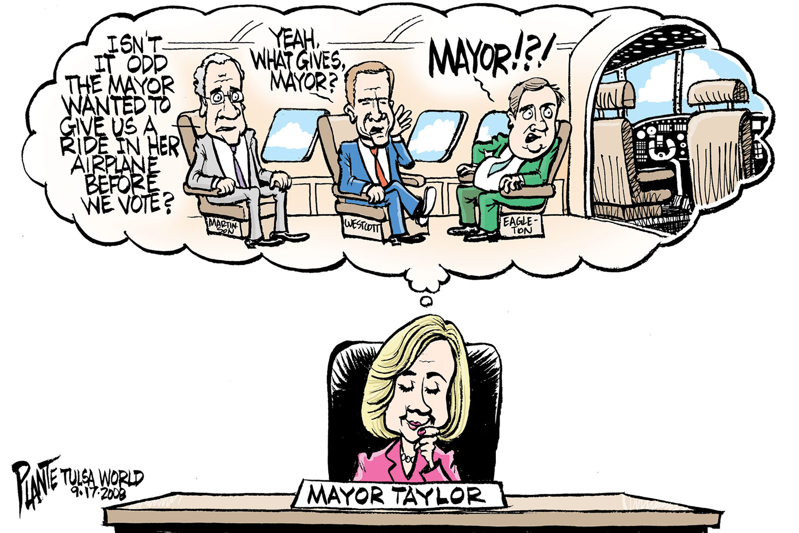 Tags/Keywords Councilor Eagleton, Councilor Martinson, Councilor Westcott, Mayor Taylor, Tulsa, Tulsa City Council, FILE: PlantB20080918 Reprint This CartoonBuy A PrintBuy The Original REPRINT THIS CARTOON Fill out the info below and I'll be in touch ASAP Your Name (required) Your Email (required) Details, Print, Digital, Circulation, etc. Please leave this field empty. BUY A PRINT OF THIS CARTOON Fill out the info below and I'll be in touch ASAP Your Name(required) Your Email(required) Details, Number of copies, Questions. Please leave this field empty. BUY THE ORIGINAL Originals may or may not be available. Fill out the info below and I'll be in touch ASAP Your Name (required) Your Email (required) Your Message Please leave this field empty.