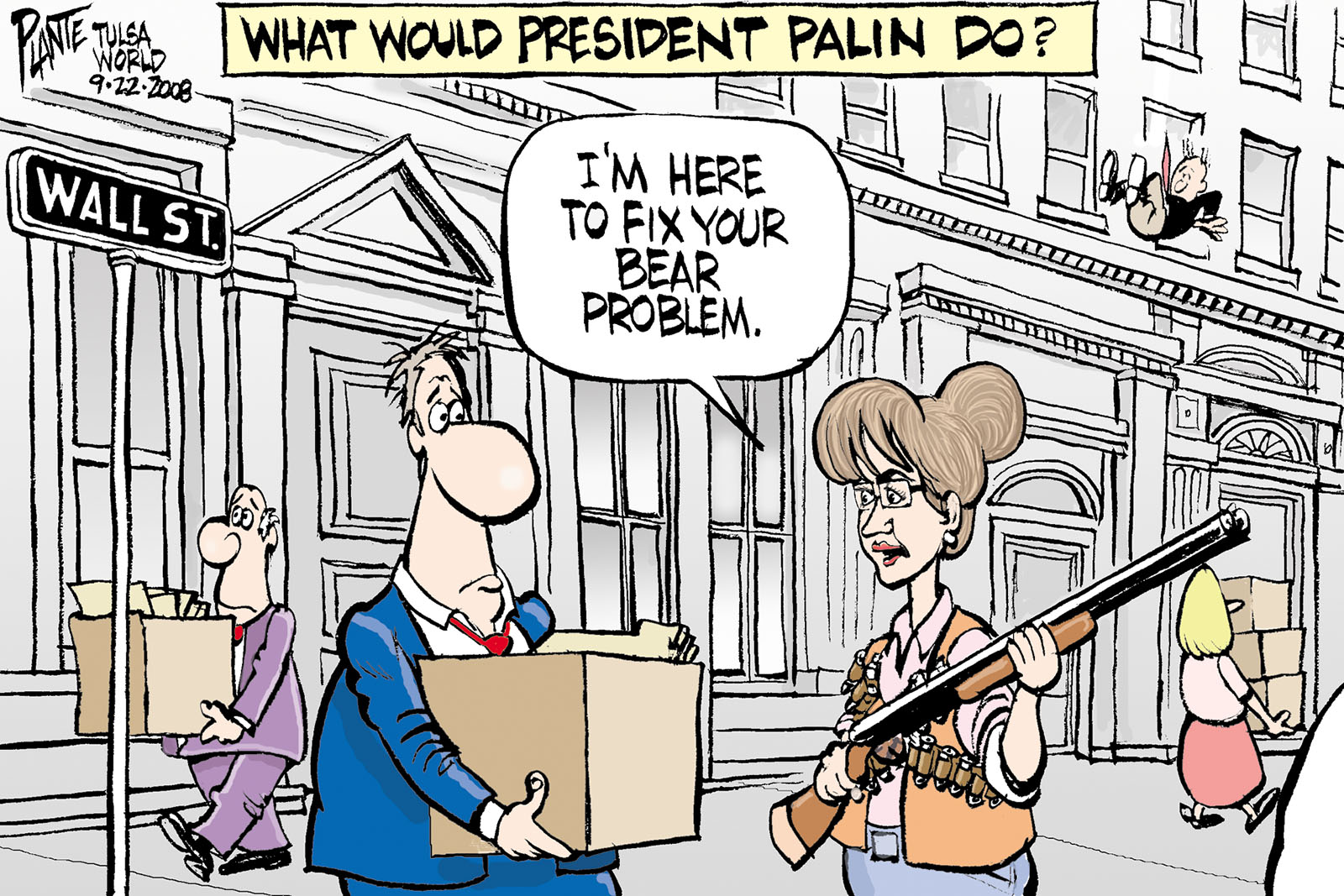 Tags/Keywords bear market, Financial Crisis, Gov. Sarah Palin, John McCain, McCain Palin ticket, Presidential Campaign 2008, Wall Street, FILE: PlantB20080923 Reprint This CartoonBuy A PrintBuy The Original REPRINT THIS CARTOON Fill out the info below and I'll be in touch ASAP Your Name (required) Your Email (required) Details, Print, Digital, Circulation, etc. Please leave this field empty. BUY A PRINT OF THIS CARTOON Fill out the info below and I'll be in touch ASAP Your Name(required) Your Email(required) Details, Number of copies, Questions. Please leave this field empty. BUY THE ORIGINAL Originals may or may not be available. Fill out the info below and I'll be in touch ASAP Your Name (required) Your Email (required) Your Message Please leave this field empty.