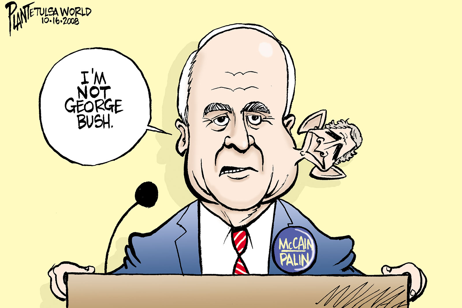 Tags/Keywords George W. Bush, Presidential Campaign 2008, Presidential Debate, Republican Party, Senator John McCain, FILE: PlantB20081017 Reprint This CartoonBuy A PrintBuy The Original REPRINT THIS CARTOON Fill out the info below and I'll be in touch ASAP Your Name (required) Your Email (required) Details, Print, Digital, Circulation, etc. Please leave this field empty. BUY A PRINT OF THIS CARTOON Fill out the info below and I'll be in touch ASAP Your Name(required) Your Email(required) Details, Number of copies, Questions. Please leave this field empty. BUY THE ORIGINAL Originals may or may not be available. Fill out the info below and I'll be in touch ASAP Your Name (required) Your Email (required) Your Message Please leave this field empty.