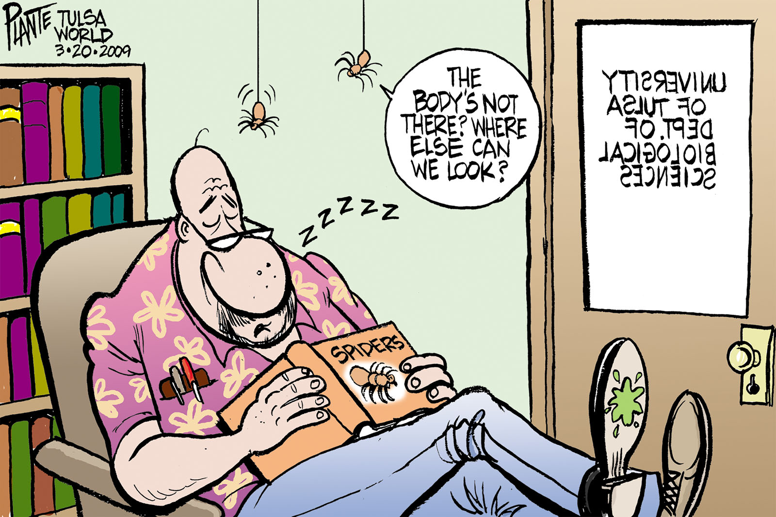 Tags/Keywords Spider, Spiders in Tulsa, FILE: PlantB20090322 Reprint This CartoonBuy A PrintBuy The Original REPRINT THIS CARTOON Fill out the info below and I'll be in touch ASAP Your Name (required) Your Email (required) Details, Print, Digital, Circulation, etc. Please leave this field empty. BUY A PRINT OF THIS CARTOON Fill out the info below and I'll be in touch ASAP Your Name(required) Your Email(required) Details, Number of copies, Questions. Please leave this field empty. BUY THE ORIGINAL Originals may or may not be available. Fill out the info below and I'll be in touch ASAP Your Name (required) Your Email (required) Your Message Please leave this field empty.