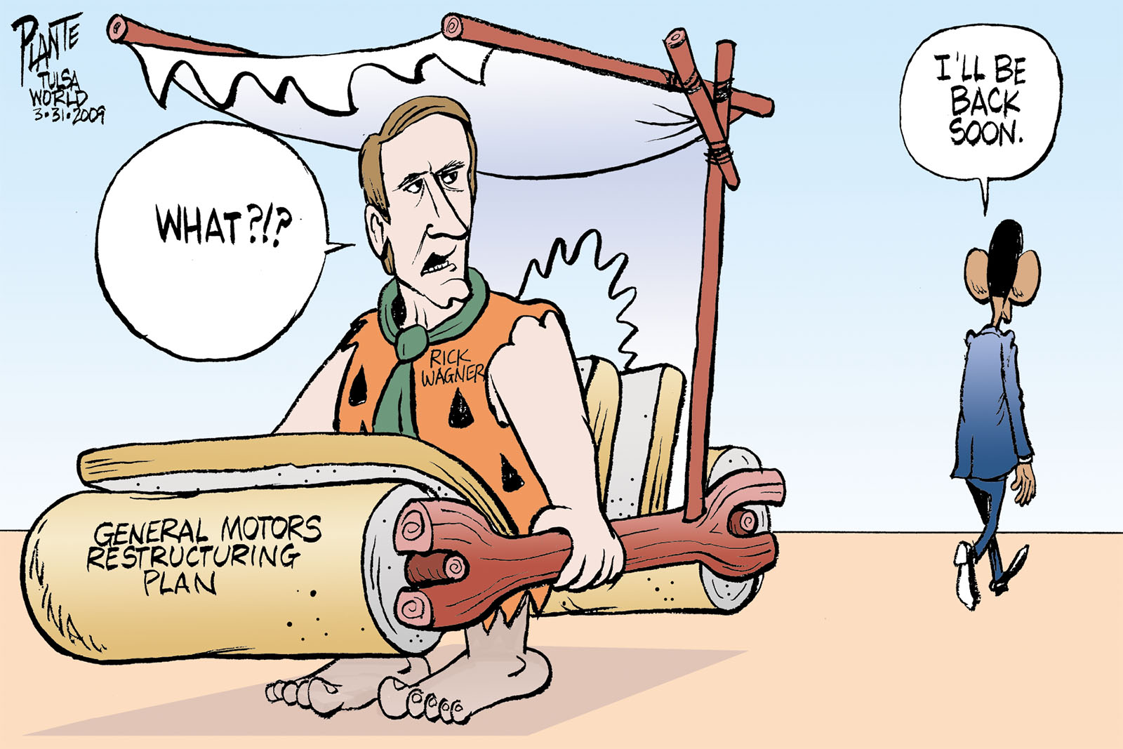 Tags/Keywords General Motors Restructuring Plan, New GM Model, President Barack Obama, U.S. Automakers, FILE: PlantB20090401 Reprint This CartoonBuy A PrintBuy The Original REPRINT THIS CARTOON Fill out the info below and I'll be in touch ASAP Your Name (required) Your Email (required) Details, Print, Digital, Circulation, etc. Please leave this field empty. BUY A PRINT OF THIS CARTOON Fill out the info below and I'll be in touch ASAP Your Name(required) Your Email(required) Details, Number of copies, Questions. Please leave this field empty. BUY THE ORIGINAL Originals may or may not be available. Fill out the info below and I'll be in touch ASAP Your Name (required) Your Email (required) Your Message Please leave this field empty.