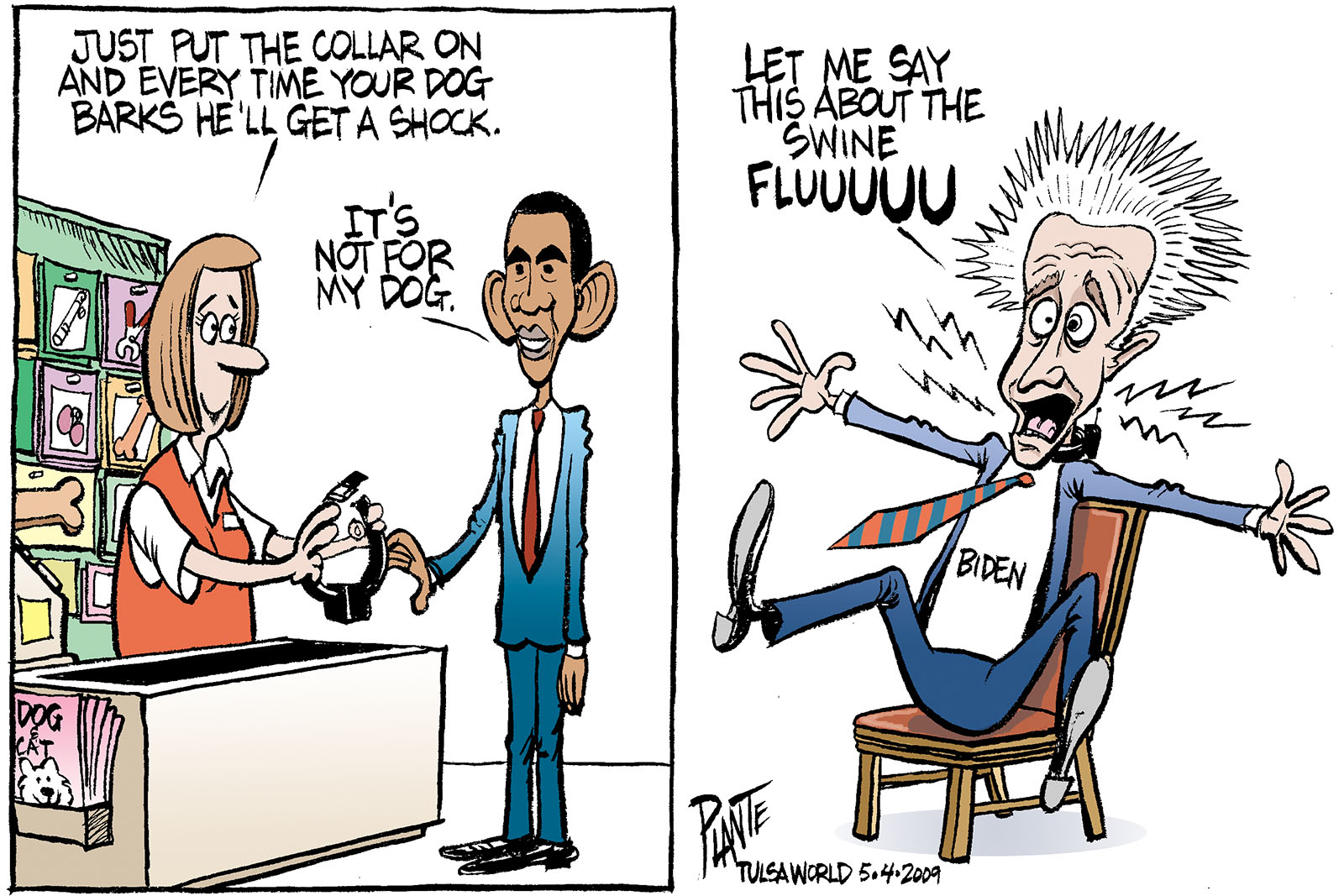 Tags/Keywords President Barack Obama, Shock Therapy, Swine Flu, Vice President Joe Biden, FILE: PlantB20090505 Reprint This CartoonBuy A PrintBuy The Original REPRINT THIS CARTOON Fill out the info below and I'll be in touch ASAP Your Name (required) Your Email (required) Details, Print, Digital, Circulation, etc. Please leave this field empty. BUY A PRINT OF THIS CARTOON Fill out the info below and I'll be in touch ASAP Your Name(required) Your Email(required) Details, Number of copies, Questions. Please leave this field empty. BUY THE ORIGINAL Originals may or may not be available. Fill out the info below and I'll be in touch ASAP Your Name (required) Your Email (required) Your Message Please leave this field empty.