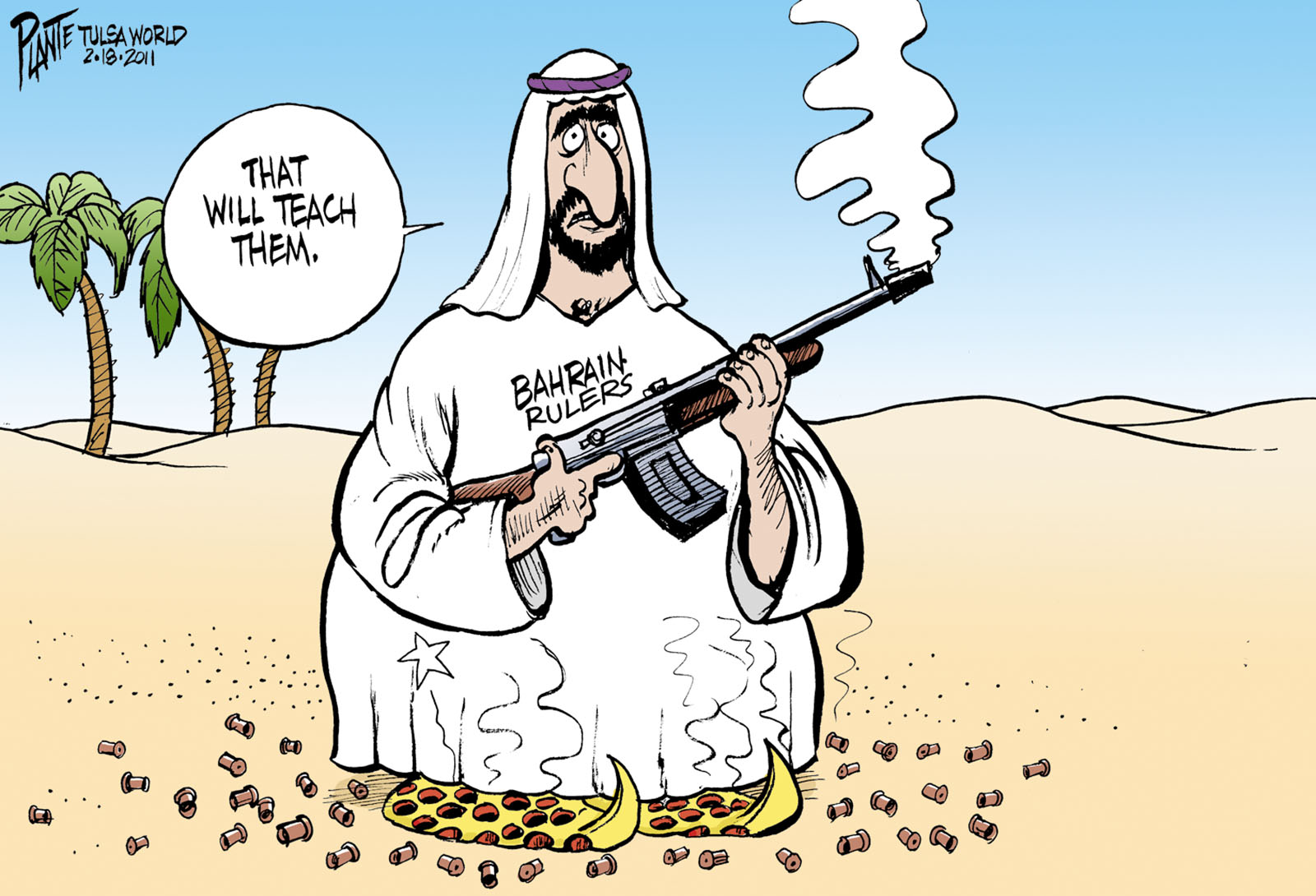 Tags/Keywords Bahrain, Middle East, Will they never learn?, FILE: PlantB20110220 Reprint This CartoonBuy A PrintBuy The Original REPRINT THIS CARTOON Fill out the info below and I'll be in touch ASAP Your Name (required) Your Email (required) Details, Print, Digital, Circulation, etc. Please leave this field empty. BUY A PRINT OF THIS CARTOON Fill out the info below and I'll be in touch ASAP Your Name(required) Your Email(required) Details, Number of copies, Questions. Please leave this field empty. BUY THE ORIGINAL Originals may or may not be available. Fill out the info below and I'll be in touch ASAP Your Name (required) Your Email (required) Your Message Please leave this field empty.