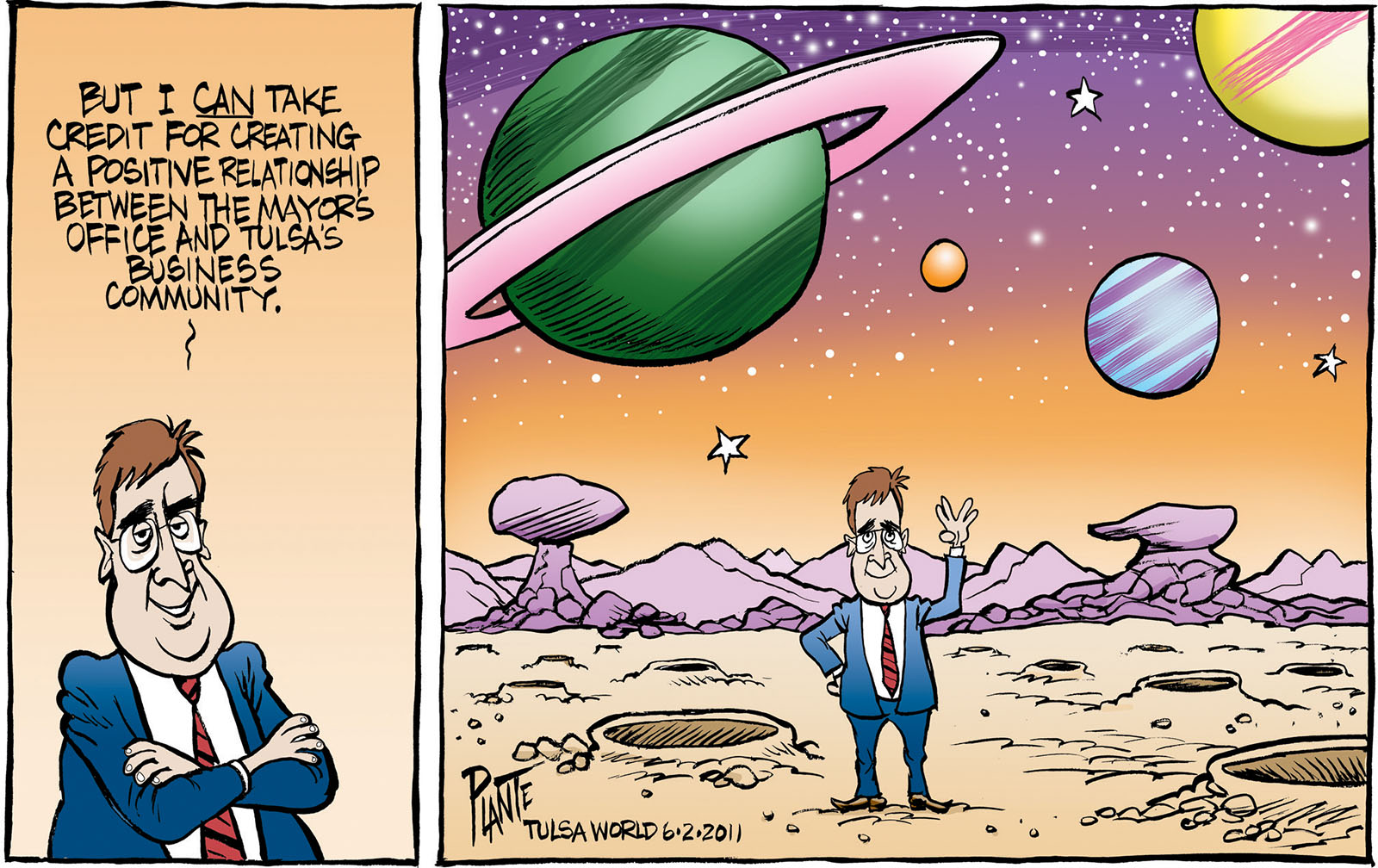 Tags/Keywords 10 point Plan, Dewey's World, Mayor Dewey Bartlett, Tulsa, Tulsa City Government, FILE: PlantB20110603 Reprint This CartoonBuy A PrintBuy The Original REPRINT THIS CARTOON Fill out the info below and I'll be in touch ASAP Your Name (required) Your Email (required) Details, Print, Digital, Circulation, etc. Please leave this field empty. BUY A PRINT OF THIS CARTOON Fill out the info below and I'll be in touch ASAP Your Name(required) Your Email(required) Details, Number of copies, Questions. Please leave this field empty. BUY THE ORIGINAL Originals may or may not be available. Fill out the info below and I'll be in touch ASAP Your Name (required) Your Email (required) Your Message Please leave this field empty.