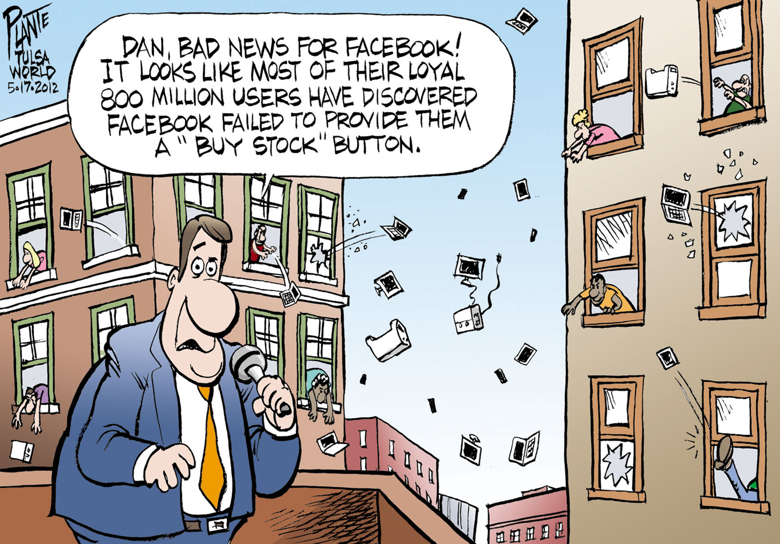Tags/Keywords facebook, Facebook oops, IPO, Mark Zuckerberg, Social Network, social networking, FILE: PlantB20120518 Reprint This CartoonBuy A PrintBuy The Original REPRINT THIS CARTOON Fill out the info below and I'll be in touch ASAP Your Name (required) Your Email (required) Details, Print, Digital, Circulation, etc. Please leave this field empty. BUY A PRINT OF THIS CARTOON Fill out the info below and I'll be in touch ASAP Your Name(required) Your Email(required) Details, Number of copies, Questions. Please leave this field empty. BUY THE ORIGINAL Originals may or may not be available. Fill out the info below and I'll be in touch ASAP Your Name (required) Your Email (required) Your Message Please leave this field empty.