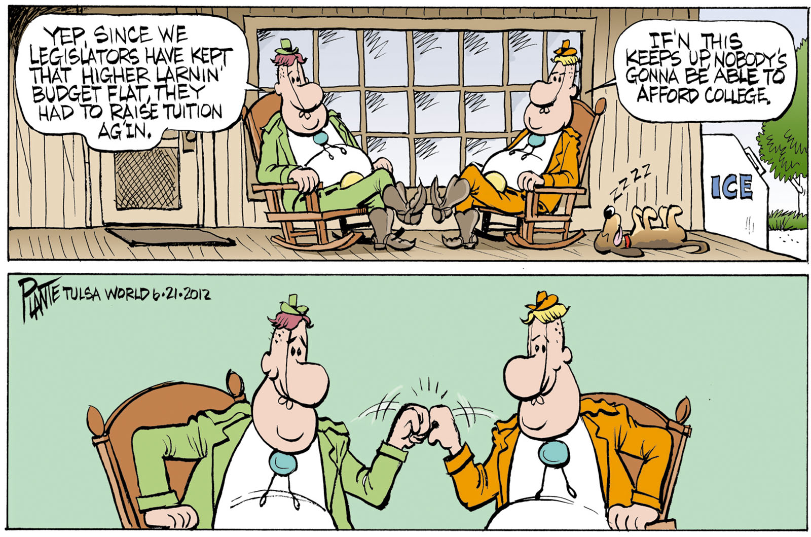Tags/Keywords OK, Oklahoma college tuition hike, Oklahoma Higher Larnin', Oklahoma House, Oklahoma Legislature, Oklahoma Senator, FILE: PlantB20120622 Reprint This CartoonBuy A PrintBuy The Original REPRINT THIS CARTOON Fill out the info below and I'll be in touch ASAP Your Name (required) Your Email (required) Details, Print, Digital, Circulation, etc. Please leave this field empty. BUY A PRINT OF THIS CARTOON Fill out the info below and I'll be in touch ASAP Your Name(required) Your Email(required) Details, Number of copies, Questions. Please leave this field empty. BUY THE ORIGINAL Originals may or may not be available. Fill out the info below and I'll be in touch ASAP Your Name (required) Your Email (required) Your Message Please leave this field empty.