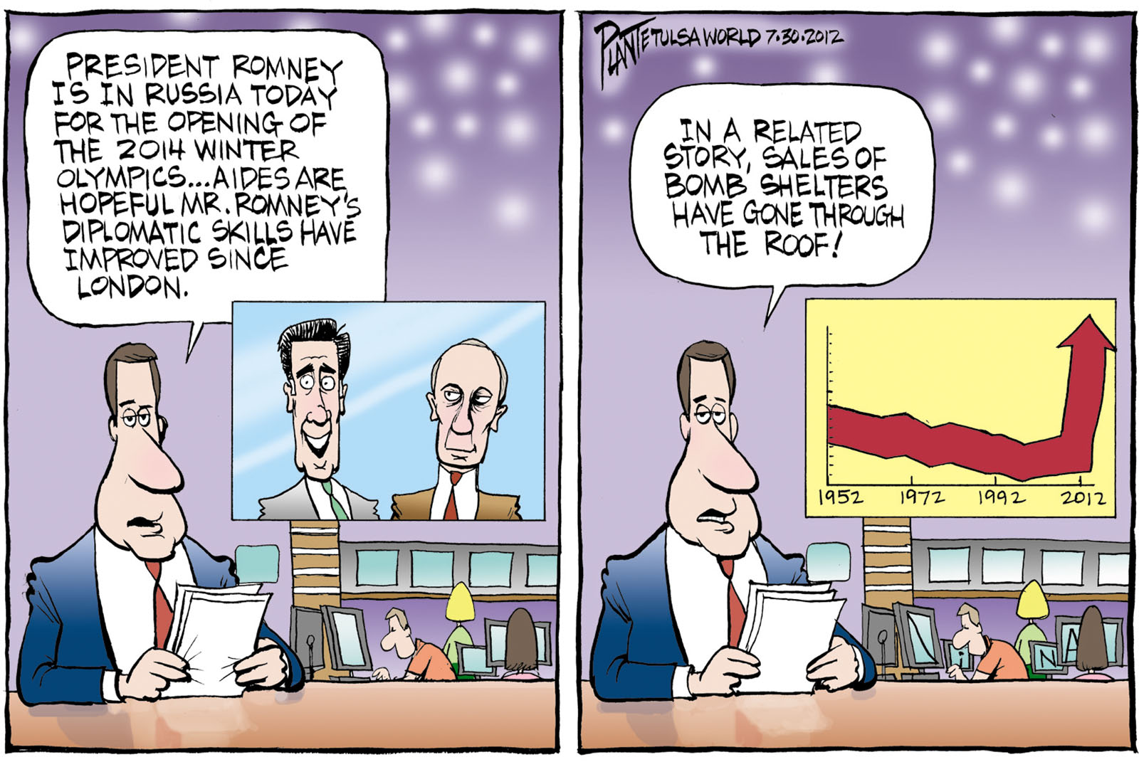 Tags/Keywords 2012 Summer Olympic, GOP, Governor Mitt Romney, Great Britain, London, Mitt the Diplomat, Republican Party, RNC, Romney gaffs, FILE: PlantB20120731 Reprint This CartoonBuy A PrintBuy The Original REPRINT THIS CARTOON Fill out the info below and I'll be in touch ASAP Your Name (required) Your Email (required) Details, Print, Digital, Circulation, etc. Please leave this field empty. BUY A PRINT OF THIS CARTOON Fill out the info below and I'll be in touch ASAP Your Name(required) Your Email(required) Details, Number of copies, Questions. Please leave this field empty. BUY THE ORIGINAL Originals may or may not be available. Fill out the info below and I'll be in touch ASAP Your Name (required) Your Email (required) Your Message Please leave this field empty.