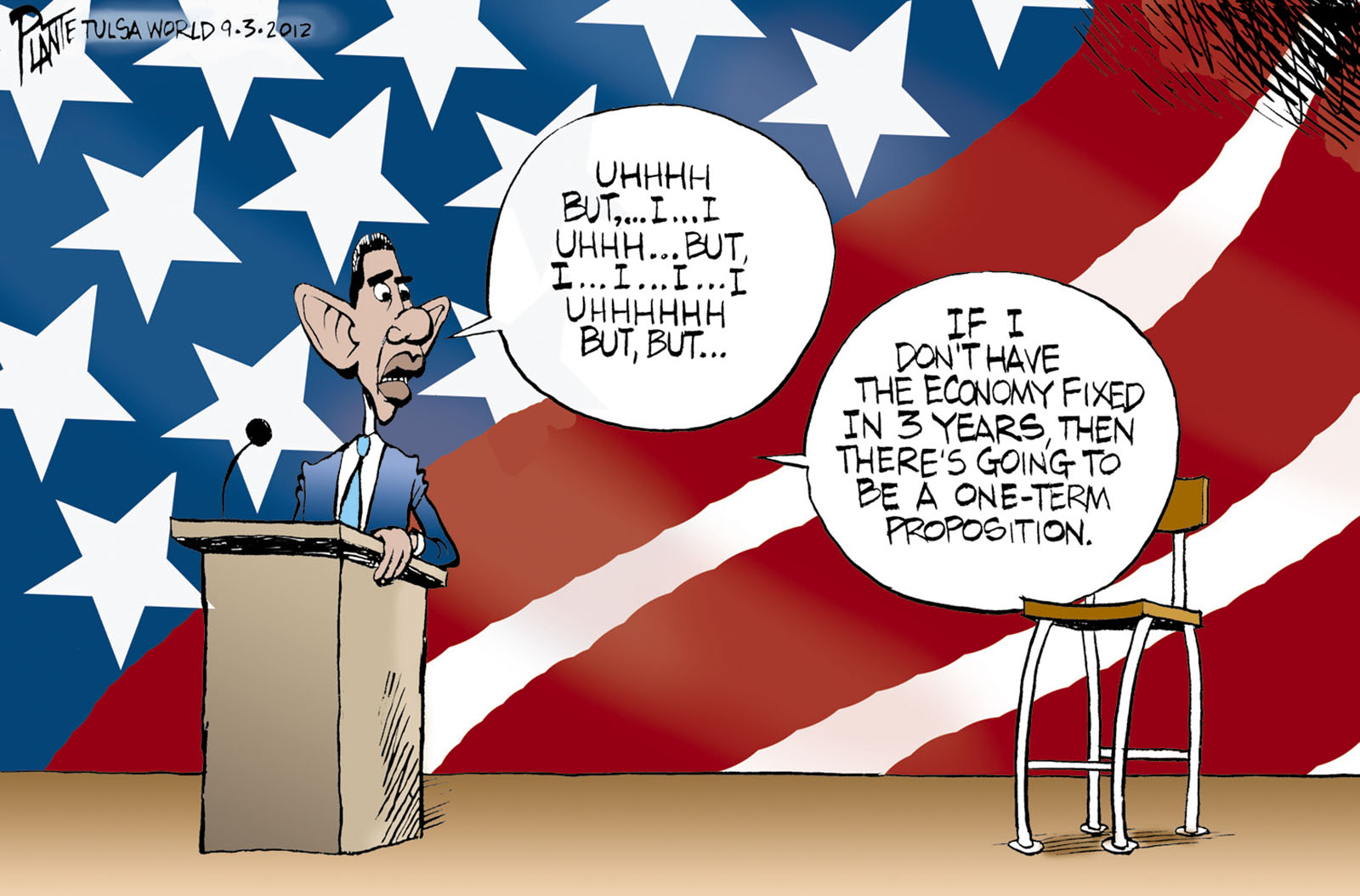 Tags/Keywords Democratic National Convention 2012, Democratic Party, DNC, Election 2012, Obama's Chair, President Barack Obama, Presidential Election 2012, FILE: PlantB20120904 Reprint This CartoonBuy A PrintBuy The Original REPRINT THIS CARTOON Fill out the info below and I'll be in touch ASAP Your Name (required) Your Email (required) Details, Print, Digital, Circulation, etc. Please leave this field empty. BUY A PRINT OF THIS CARTOON Fill out the info below and I'll be in touch ASAP Your Name(required) Your Email(required) Details, Number of copies, Questions. Please leave this field empty. BUY THE ORIGINAL Originals may or may not be available. Fill out the info below and I'll be in touch ASAP Your Name (required) Your Email (required) Your Message Please leave this field empty.