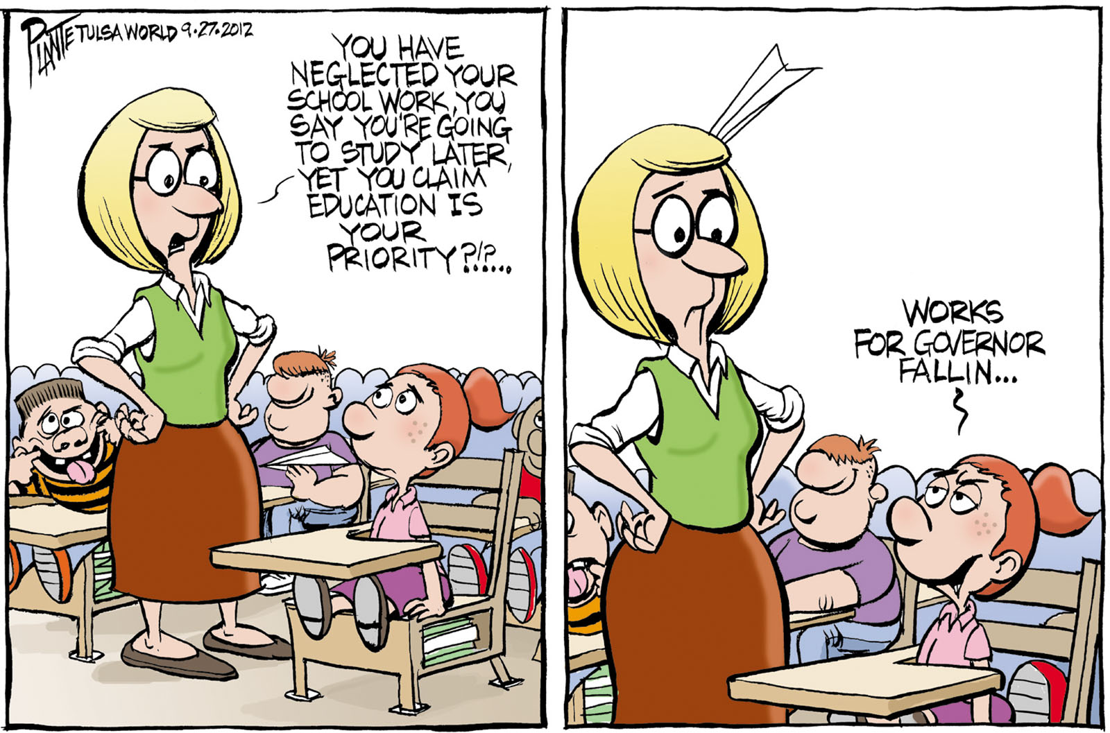 Tags/Keywords Education, Oklahoma Governor Mary Fallin, Oklahoma school daze, FILE: PlantB20120928 Reprint This CartoonBuy A PrintBuy The Original REPRINT THIS CARTOON Fill out the info below and I'll be in touch ASAP Your Name (required) Your Email (required) Details, Print, Digital, Circulation, etc. Please leave this field empty. BUY A PRINT OF THIS CARTOON Fill out the info below and I'll be in touch ASAP Your Name(required) Your Email(required) Details, Number of copies, Questions. Please leave this field empty. BUY THE ORIGINAL Originals may or may not be available. Fill out the info below and I'll be in touch ASAP Your Name (required) Your Email (required) Your Message Please leave this field empty.