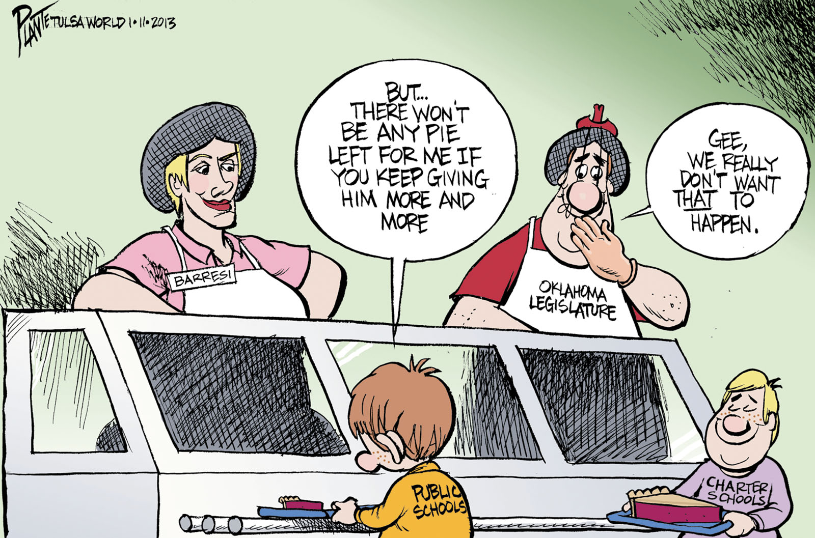 Tags/Keywords Charter Schools, Lack of Pie, Oklahoma Department of Education, Oklahoma Public schools, Oklahoma School Superintendent Janet Barresi, FILE: PlantB20130113 Reprint This CartoonBuy A PrintBuy The Original REPRINT THIS CARTOON Fill out the info below and I'll be in touch ASAP Your Name (required) Your Email (required) Details, Print, Digital, Circulation, etc. Please leave this field empty. BUY A PRINT OF THIS CARTOON Fill out the info below and I'll be in touch ASAP Your Name(required) Your Email(required) Details, Number of copies, Questions. Please leave this field empty. BUY THE ORIGINAL Originals may or may not be available. Fill out the info below and I'll be in touch ASAP Your Name (required) Your Email (required) Your Message Please leave this field empty.