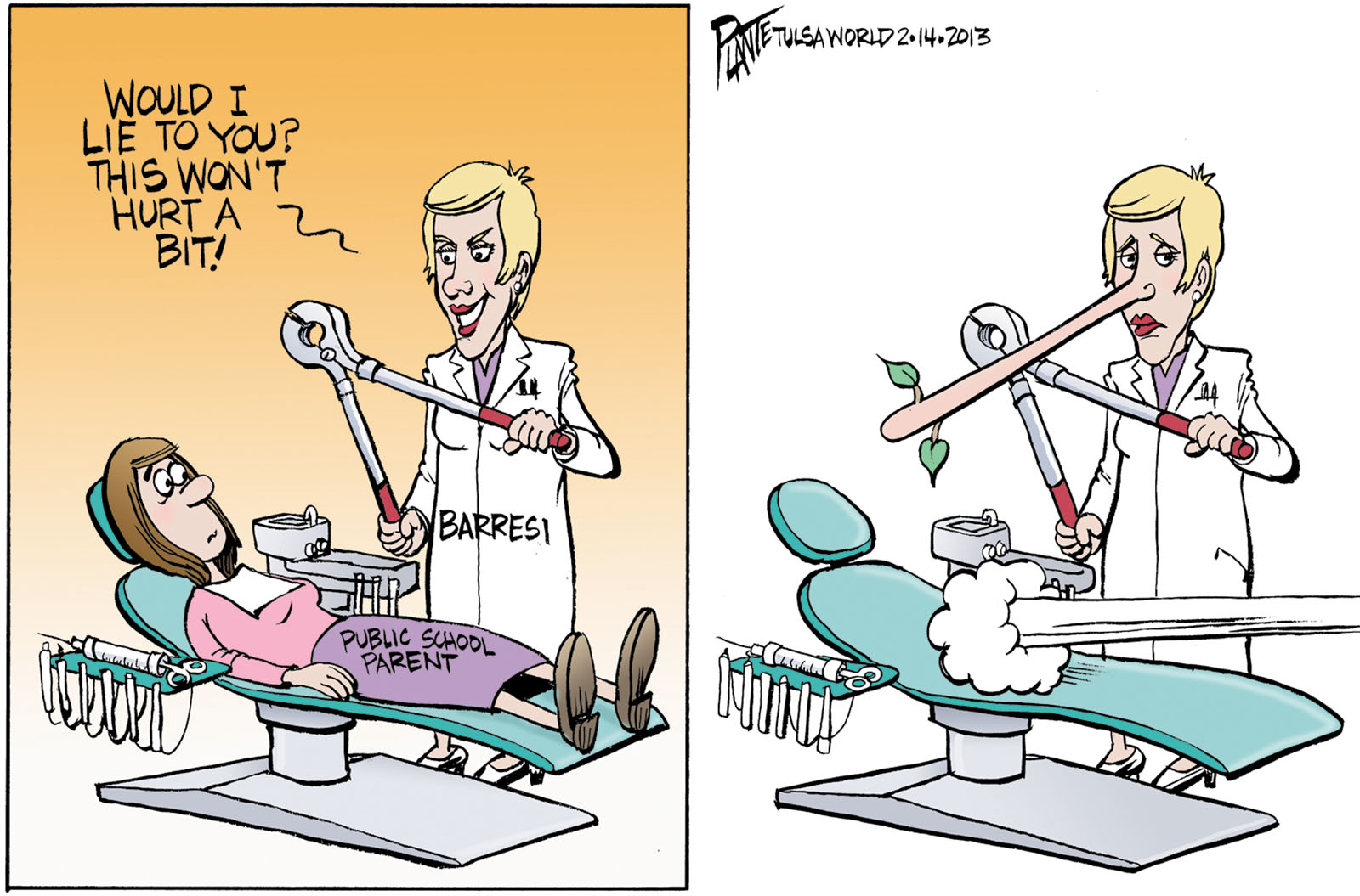 Tags/Keywords Barresi the former dentist, Oklahoma School Superintendent Janet Barresi, state grading system, FILE: PlantB20130215 Reprint This CartoonBuy A PrintBuy The Original REPRINT THIS CARTOON Fill out the info below and I'll be in touch ASAP Your Name (required) Your Email (required) Details, Print, Digital, Circulation, etc. Please leave this field empty. BUY A PRINT OF THIS CARTOON Fill out the info below and I'll be in touch ASAP Your Name(required) Your Email(required) Details, Number of copies, Questions. Please leave this field empty. BUY THE ORIGINAL Originals may or may not be available. Fill out the info below and I'll be in touch ASAP Your Name (required) Your Email (required) Your Message Please leave this field empty.