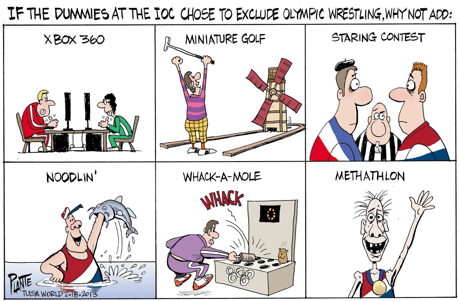 Tags/Keywords 2016 Summer Olympics, 2020 Summer Olympics, International Olympic Committee, IOC, Oklahoma wrestling, Olympic Wrestling, FILE: PlantB20130219 Reprint This CartoonBuy A PrintBuy The Original REPRINT THIS CARTOON Fill out the info below and I'll be in touch ASAP Your Name (required) Your Email (required) Details, Print, Digital, Circulation, etc. Please leave this field empty. BUY A PRINT OF THIS CARTOON Fill out the info below and I'll be in touch ASAP Your Name(required) Your Email(required) Details, Number of copies, Questions. Please leave this field empty. BUY THE ORIGINAL Originals may or may not be available. Fill out the info below and I'll be in touch ASAP Your Name (required) Your Email (required) Your Message Please leave this field empty.