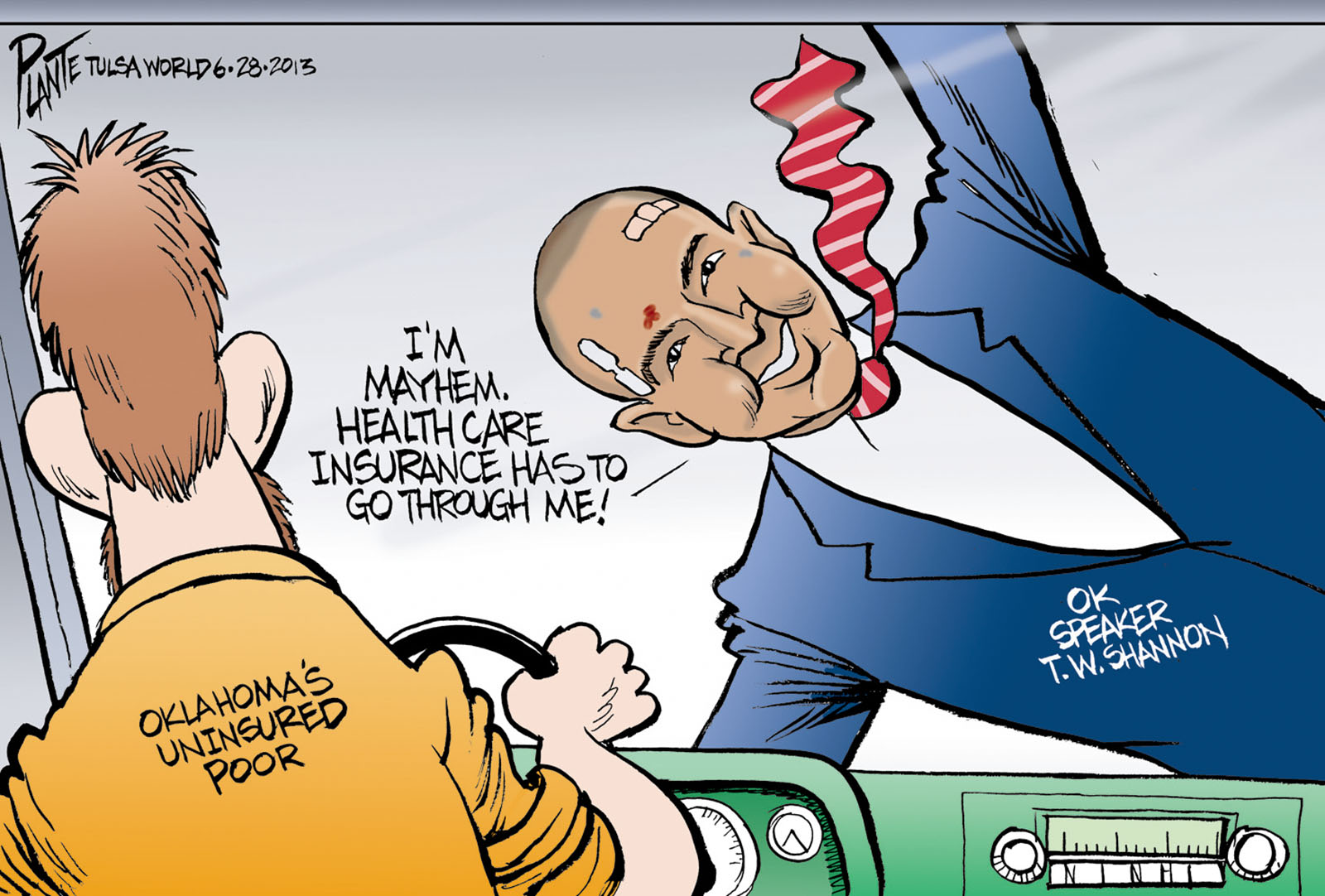 Tags/Keywords Affordable Care Act, Governor Mary Fallin, Insuring Oklahoma, Leavitt Partners report, Medicaid, Oklahoma Health Care Authority, Oklahoma Speaker of the House- T.W. Shannon, FILE: PlantB20130630 Reprint This CartoonBuy A PrintBuy The Original REPRINT THIS CARTOON Fill out the info below and I'll be in touch ASAP Your Name (required) Your Email (required) Details, Print, Digital, Circulation, etc. Please leave this field empty. BUY A PRINT OF THIS CARTOON Fill out the info below and I'll be in touch ASAP Your Name(required) Your Email(required) Details, Number of copies, Questions. Please leave this field empty. BUY THE ORIGINAL Originals may or may not be available. Fill out the info below and I'll be in touch ASAP Your Name (required) Your Email (required) Your Message Please leave this field empty.