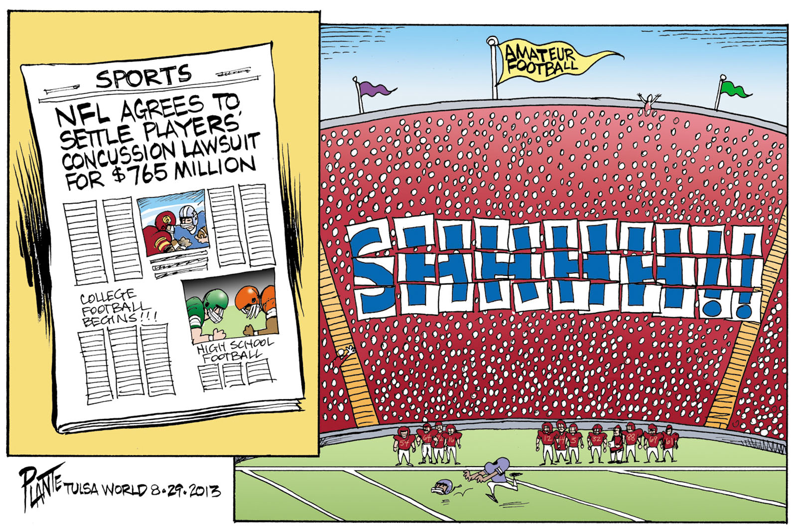 Tags/Keywords $765 million, brain injuries, College Football, concussions, High School Football, Nationa Football League, NCAA, NFL, The Future of Football, FILE: PlantB20130901 Reprint This CartoonBuy A PrintBuy The Original REPRINT THIS CARTOON Fill out the info below and I'll be in touch ASAP Your Name (required) Your Email (required) Details, Print, Digital, Circulation, etc. Please leave this field empty. BUY A PRINT OF THIS CARTOON Fill out the info below and I'll be in touch ASAP Your Name(required) Your Email(required) Details, Number of copies, Questions. Please leave this field empty. BUY THE ORIGINAL Originals may or may not be available. Fill out the info below and I'll be in touch ASAP Your Name (required) Your Email (required) Your Message Please leave this field empty.