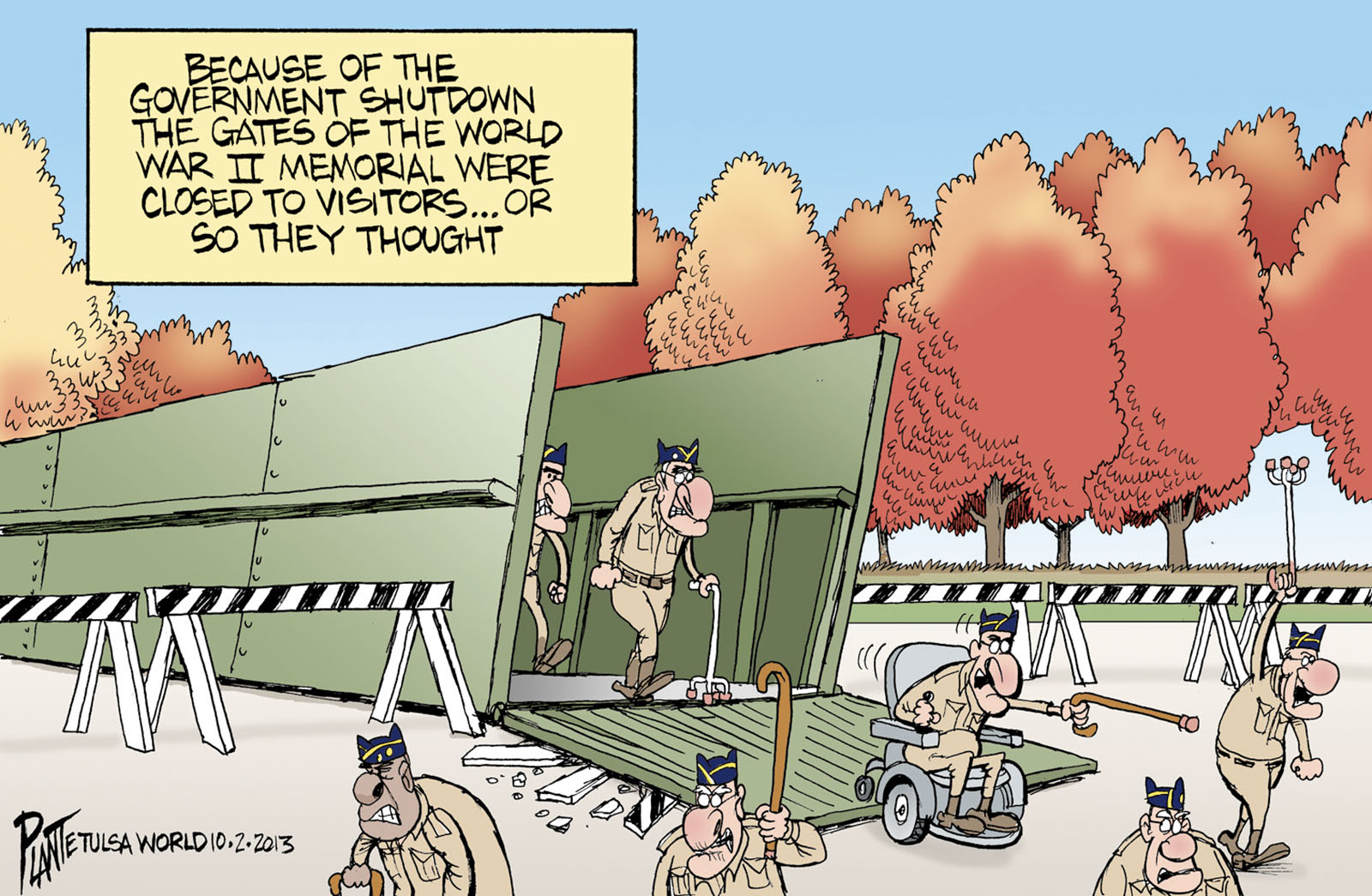 Tags/Keywords Government Shutdown, The closed World War II Memorial, veterans, vets, World War II veterans, FILE: PlantB20131003 Reprint This CartoonBuy A PrintBuy The Original REPRINT THIS CARTOON Fill out the info below and I'll be in touch ASAP Your Name (required) Your Email (required) Details, Print, Digital, Circulation, etc. Please leave this field empty. BUY A PRINT OF THIS CARTOON Fill out the info below and I'll be in touch ASAP Your Name(required) Your Email(required) Details, Number of copies, Questions. Please leave this field empty. BUY THE ORIGINAL Originals may or may not be available. Fill out the info below and I'll be in touch ASAP Your Name (required) Your Email (required) Your Message Please leave this field empty.