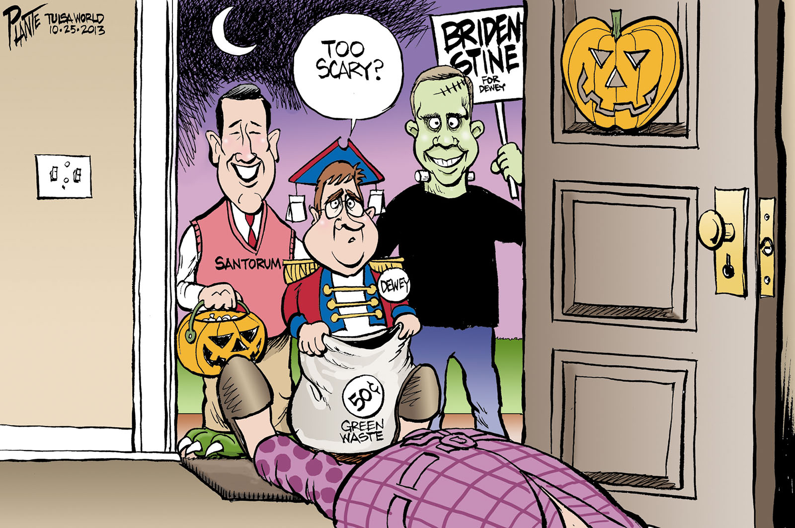 Tags/Keywords City Hall, Dewey Boo Boo, GOP, Halloween, Mayor Dewey Barlett, Rep. Jim Bridenstine, Republican Party, RNC, Senator Rick Santorum, Tea Party, Tulsa Oklahoma, FILE: PlantB20131027 Reprint This CartoonBuy A PrintBuy The Original REPRINT THIS CARTOON Fill out the info below and I'll be in touch ASAP Your Name (required) Your Email (required) Details, Print, Digital, Circulation, etc. Please leave this field empty. BUY A PRINT OF THIS CARTOON Fill out the info below and I'll be in touch ASAP Your Name(required) Your Email(required) Details, Number of copies, Questions. Please leave this field empty. BUY THE ORIGINAL Originals may or may not be available. Fill out the info below and I'll be in touch ASAP Your Name (required) Your Email (required) Your Message Please leave this field empty.