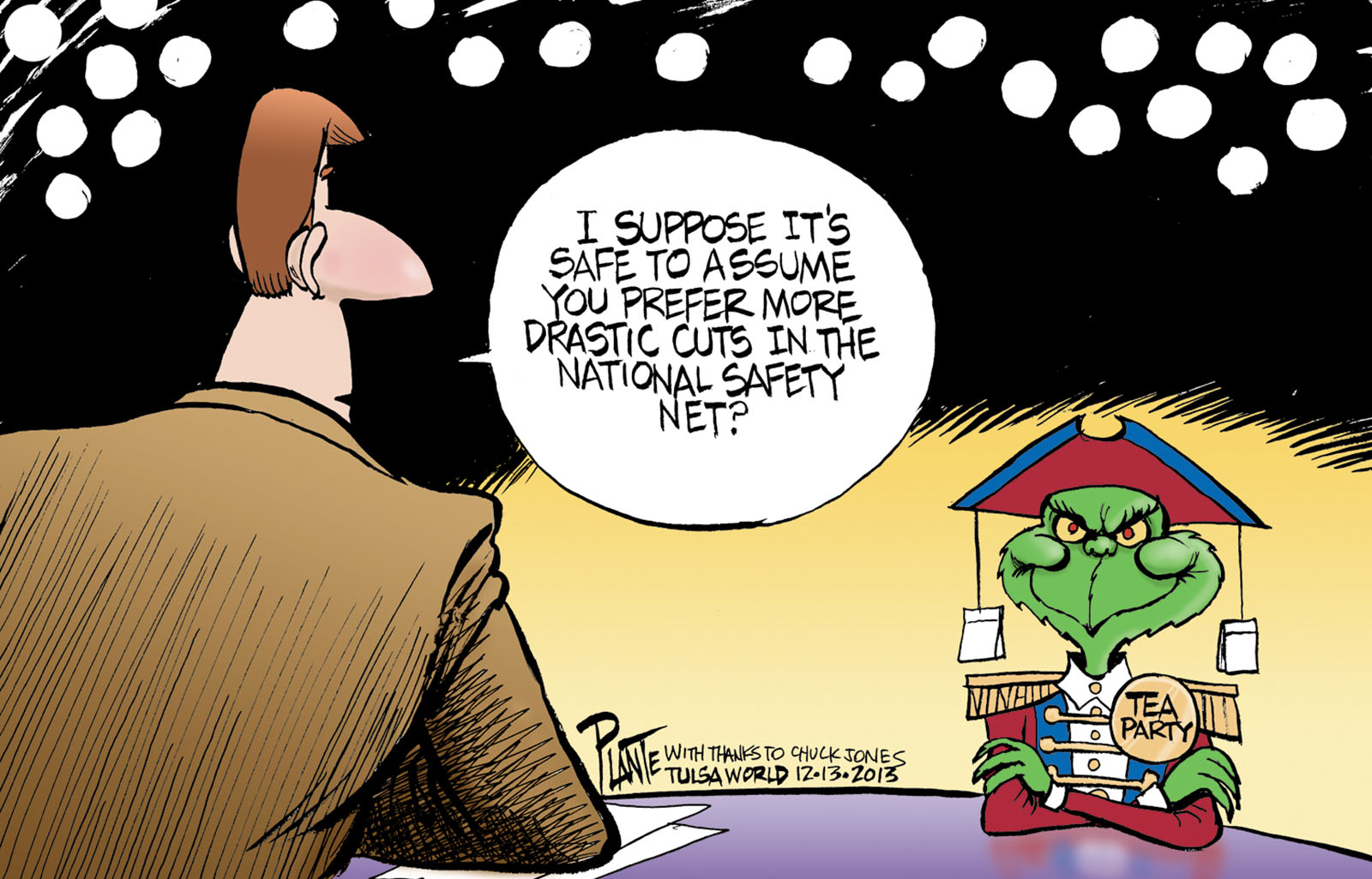 Tags/Keywords Chuck Jones, Grinch, national safety net, New TEA Party spokesman⬦, FILE: PlantB20131215 Reprint This CartoonBuy A PrintBuy The Original REPRINT THIS CARTOON Fill out the info below and I'll be in touch ASAP Your Name (required) Your Email (required) Details, Print, Digital, Circulation, etc. Please leave this field empty. BUY A PRINT OF THIS CARTOON Fill out the info below and I'll be in touch ASAP Your Name(required) Your Email(required) Details, Number of copies, Questions. Please leave this field empty. BUY THE ORIGINAL Originals may or may not be available. Fill out the info below and I'll be in touch ASAP Your Name (required) Your Email (required) Your Message Please leave this field empty.