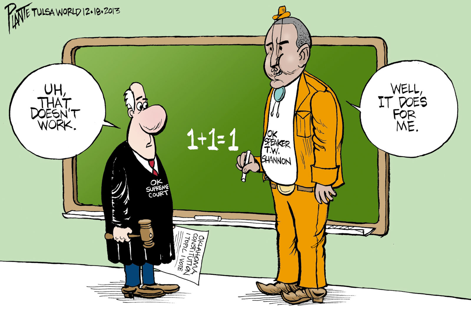 Tags/Keywords New Math, Oklahoma, Oklahoma Speaker of the House, T.W. Shannon, FILE: PlantB20131219 Reprint This CartoonBuy A PrintBuy The Original REPRINT THIS CARTOON Fill out the info below and I'll be in touch ASAP Your Name (required) Your Email (required) Details, Print, Digital, Circulation, etc. Please leave this field empty. BUY A PRINT OF THIS CARTOON Fill out the info below and I'll be in touch ASAP Your Name(required) Your Email(required) Details, Number of copies, Questions. Please leave this field empty. BUY THE ORIGINAL Originals may or may not be available. Fill out the info below and I'll be in touch ASAP Your Name (required) Your Email (required) Your Message Please leave this field empty.