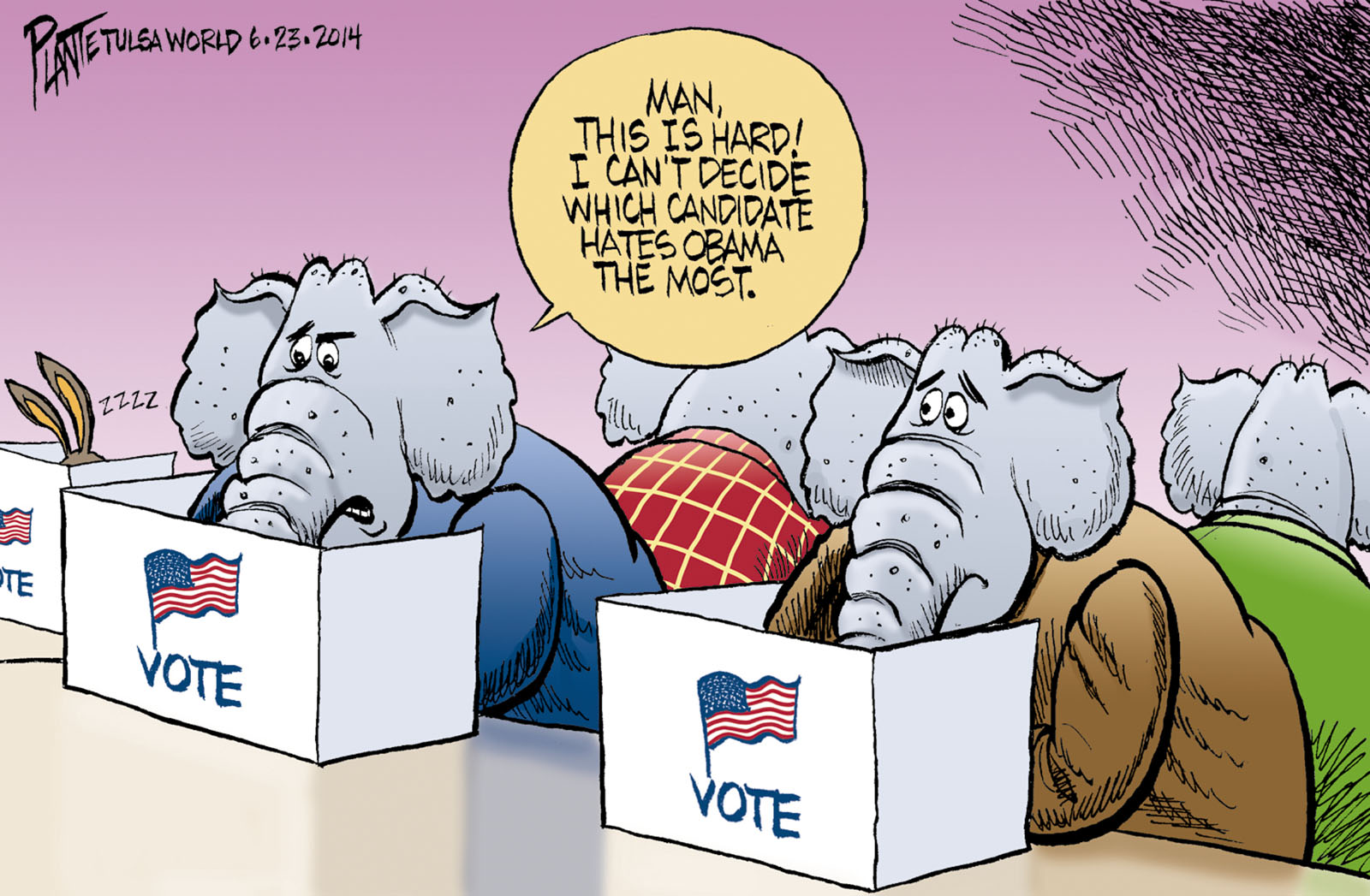 Tags/Keywords campaign, election day, GOP, Obama's influence, President Barack Obama, primary races, Republican Party, RNC, FILE: PlantB20140624 Reprint This CartoonBuy A PrintBuy The Original REPRINT THIS CARTOON Fill out the info below and I'll be in touch ASAP Your Name (required) Your Email (required) Details, Print, Digital, Circulation, etc. Please leave this field empty. BUY A PRINT OF THIS CARTOON Fill out the info below and I'll be in touch ASAP Your Name(required) Your Email(required) Details, Number of copies, Questions. Please leave this field empty. BUY THE ORIGINAL Originals may or may not be available. Fill out the info below and I'll be in touch ASAP Your Name (required) Your Email (required) Your Message Please leave this field empty.