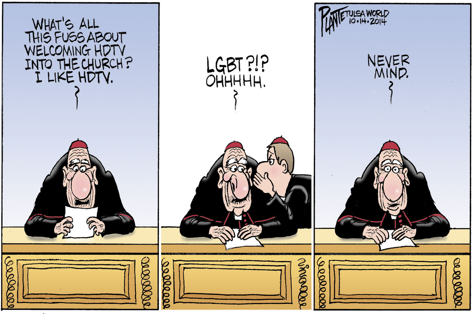 Tags/Keywords bi-sexuals, Gays, lesbians, LGBT, Pope Francis, Rome Italy, The Fuss at the Vatican, the Pope, transgender, FILE: PlantB20141015 Reprint This CartoonBuy A PrintBuy The Original REPRINT THIS CARTOON Fill out the info below and I'll be in touch ASAP Your Name (required) Your Email (required) Details, Print, Digital, Circulation, etc. Please leave this field empty. BUY A PRINT OF THIS CARTOON Fill out the info below and I'll be in touch ASAP Your Name(required) Your Email(required) Details, Number of copies, Questions. Please leave this field empty. BUY THE ORIGINAL Originals may or may not be available. Fill out the info below and I'll be in touch ASAP Your Name (required) Your Email (required) Your Message Please leave this field empty.