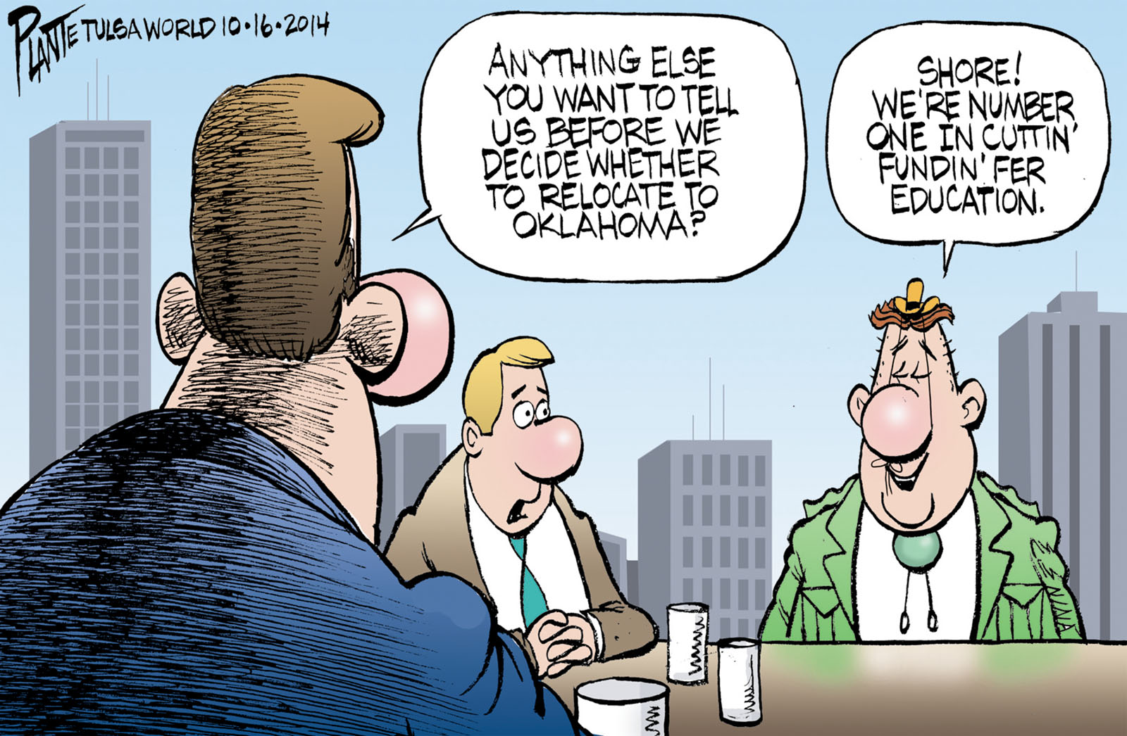 Tags/Keywords funding for education, Governor Mary Fallin, job creation, Oklahoma Legislature, Relocatin' to Oklahoma?, FILE: PlantB20141017 Reprint This CartoonBuy A PrintBuy The Original REPRINT THIS CARTOON Fill out the info below and I'll be in touch ASAP Your Name (required) Your Email (required) Details, Print, Digital, Circulation, etc. Please leave this field empty. BUY A PRINT OF THIS CARTOON Fill out the info below and I'll be in touch ASAP Your Name(required) Your Email(required) Details, Number of copies, Questions. Please leave this field empty. BUY THE ORIGINAL Originals may or may not be available. Fill out the info below and I'll be in touch ASAP Your Name (required) Your Email (required) Your Message Please leave this field empty.
