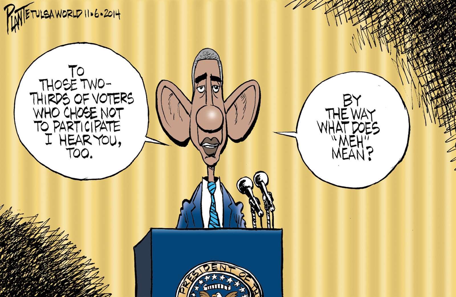 Tags/Keywords GOP, Low Voter Turnout, Mid term elections, Obama hearing, President Barack Obama, Republican Party, republican takes congress, RNC, FILE: PlantB20141107 Reprint This CartoonBuy A PrintBuy The Original REPRINT THIS CARTOON Fill out the info below and I'll be in touch ASAP Your Name (required) Your Email (required) Details, Print, Digital, Circulation, etc. Please leave this field empty. BUY A PRINT OF THIS CARTOON Fill out the info below and I'll be in touch ASAP Your Name(required) Your Email(required) Details, Number of copies, Questions. Please leave this field empty. BUY THE ORIGINAL Originals may or may not be available. Fill out the info below and I'll be in touch ASAP Your Name (required) Your Email (required) Your Message Please leave this field empty.
