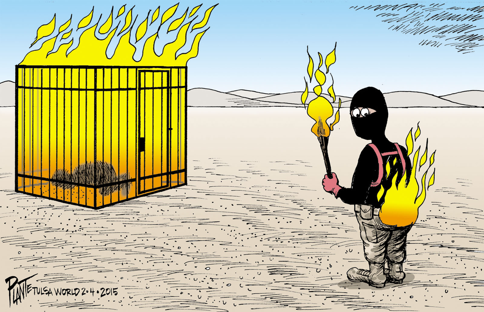 Tags/Keywords ISIS ignites reprisals, Jordanian First Lt. Moaz al-Kasasbeh, Jordanian pilot, FILE: PlantB20150205 Reprint This CartoonBuy A PrintBuy The Original REPRINT THIS CARTOON Fill out the info below and I'll be in touch ASAP Your Name (required) Your Email (required) Details, Print, Digital, Circulation, etc. Please leave this field empty. BUY A PRINT OF THIS CARTOON Fill out the info below and I'll be in touch ASAP Your Name(required) Your Email(required) Details, Number of copies, Questions. Please leave this field empty. BUY THE ORIGINAL Originals may or may not be available. Fill out the info below and I'll be in touch ASAP Your Name (required) Your Email (required) Your Message Please leave this field empty.