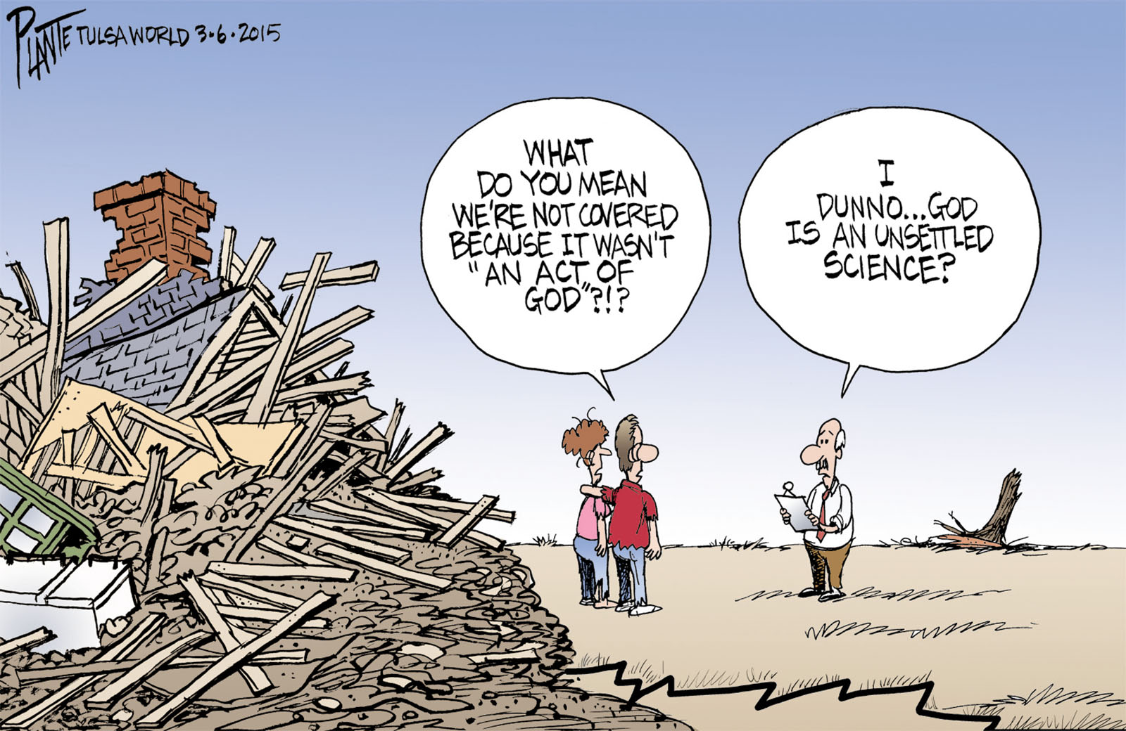 Tags/Keywords Not paying our insurance claim?, Oklahoma earthquake insurance, tornado insurance coverage, FILE: PlantB20150307 Reprint This CartoonBuy A PrintBuy The Original REPRINT THIS CARTOON Fill out the info below and I'll be in touch ASAP Your Name (required) Your Email (required) Details, Print, Digital, Circulation, etc. Please leave this field empty. BUY A PRINT OF THIS CARTOON Fill out the info below and I'll be in touch ASAP Your Name(required) Your Email(required) Details, Number of copies, Questions. Please leave this field empty. BUY THE ORIGINAL Originals may or may not be available. Fill out the info below and I'll be in touch ASAP Your Name (required) Your Email (required) Your Message Please leave this field empty.