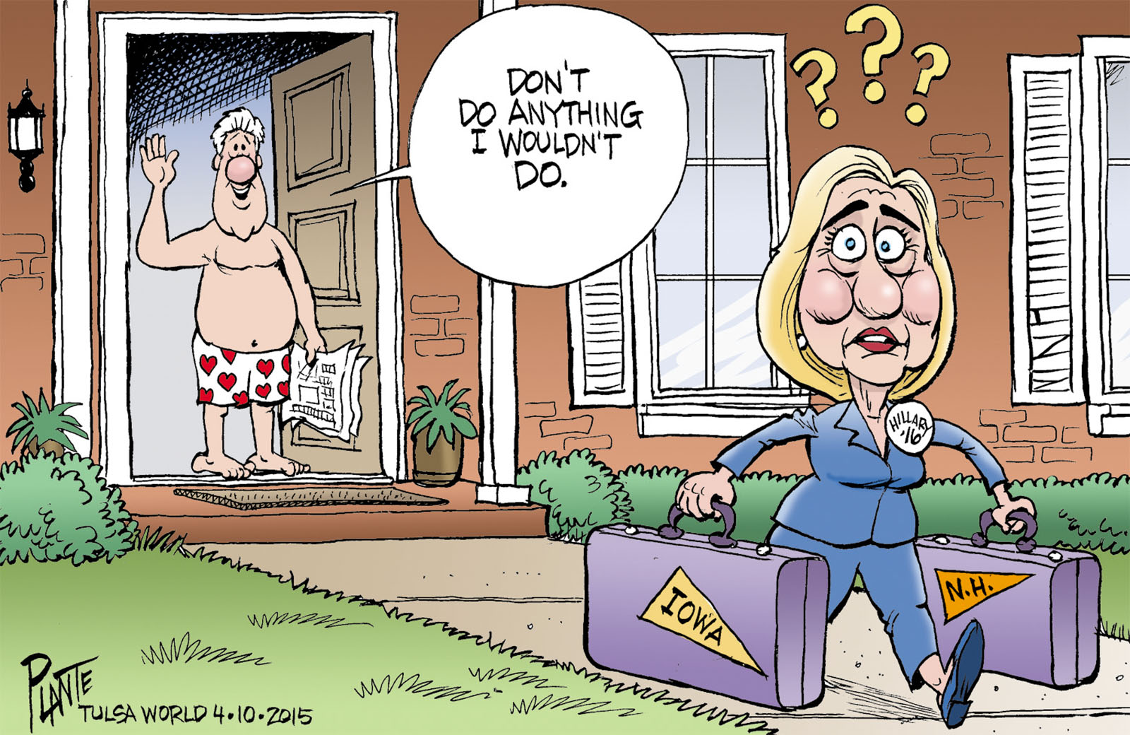 Tags/Keywords Democratic Party, dems, DNC, Hillary Rodham Clinton is running?, President Bill Clinton, Secretary of State Hillary Rodham Clinton, FILE: PlantB20150412 Reprint This CartoonBuy A PrintBuy The Original REPRINT THIS CARTOON Fill out the info below and I'll be in touch ASAP Your Name (required) Your Email (required) Details, Print, Digital, Circulation, etc. Please leave this field empty. BUY A PRINT OF THIS CARTOON Fill out the info below and I'll be in touch ASAP Your Name(required) Your Email(required) Details, Number of copies, Questions. Please leave this field empty. BUY THE ORIGINAL Originals may or may not be available. Fill out the info below and I'll be in touch ASAP Your Name (required) Your Email (required) Your Message Please leave this field empty.