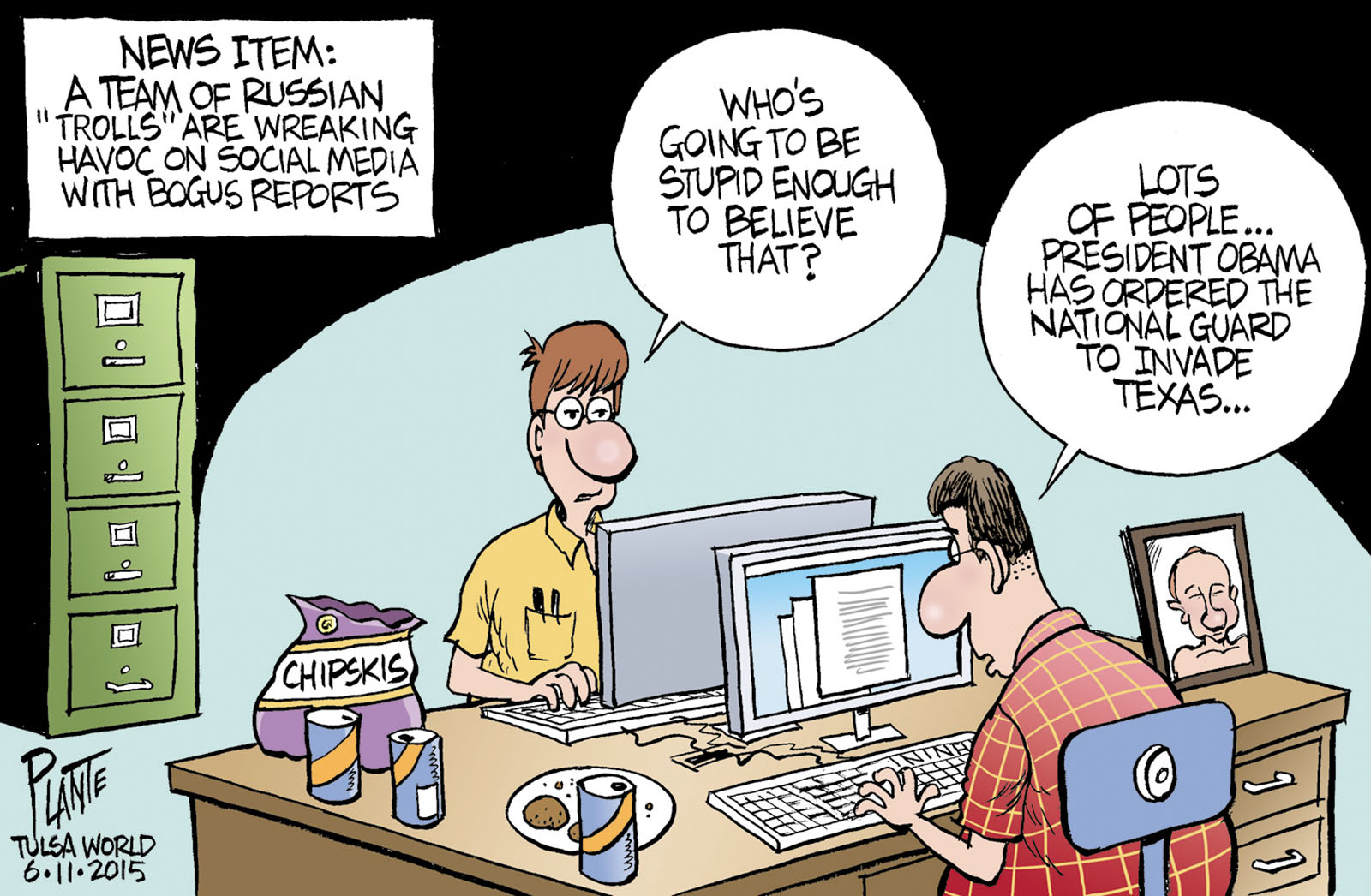Tags/Keywords facebook, internet, Jade Helm 15, National Guard, President Barack Obama, Russian troll farm, Russian Trolls and Texas, social media, Twitter, FILE: PlantB20150612 Reprint This CartoonBuy A PrintBuy The Original REPRINT THIS CARTOON Fill out the info below and I'll be in touch ASAP Your Name (required) Your Email (required) Details, Print, Digital, Circulation, etc. Please leave this field empty. BUY A PRINT OF THIS CARTOON Fill out the info below and I'll be in touch ASAP Your Name(required) Your Email(required) Details, Number of copies, Questions. Please leave this field empty. BUY THE ORIGINAL Originals may or may not be available. Fill out the info below and I'll be in touch ASAP Your Name (required) Your Email (required) Your Message Please leave this field empty.