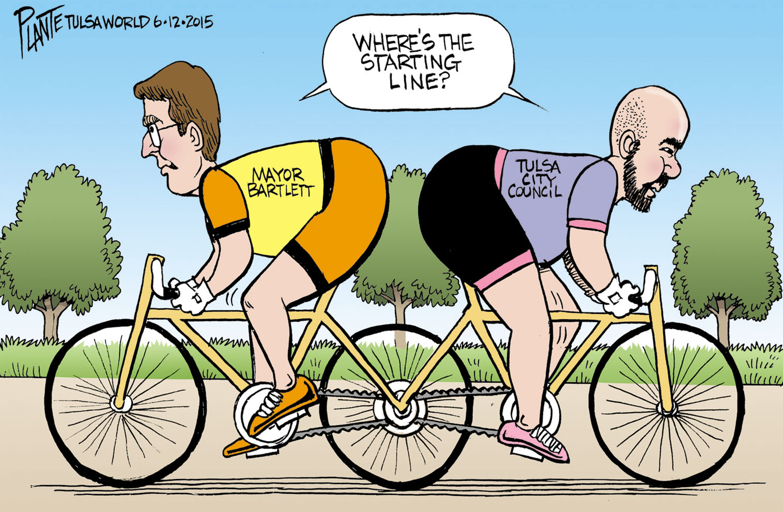 Tags/Keywords 0.6¢ game-changing projects plan, Mayor Dewey Bartlett, perminent public safety plan, Tulsa City Council, Tulsa City Councilor Blake Ewing, Tulsa Tough, Tulsa's Push-Pull Bicycle, Vision tax, FILE: PlantB20150614 Reprint This CartoonBuy A PrintBuy The Original REPRINT THIS CARTOON Fill out the info below and I'll be in touch ASAP Your Name (required) Your Email (required) Details, Print, Digital, Circulation, etc. Please leave this field empty. BUY A PRINT OF THIS CARTOON Fill out the info below and I'll be in touch ASAP Your Name(required) Your Email(required) Details, Number of copies, Questions. Please leave this field empty. BUY THE ORIGINAL Originals may or may not be available. Fill out the info below and I'll be in touch ASAP Your Name (required) Your Email (required) Your Message Please leave this field empty.