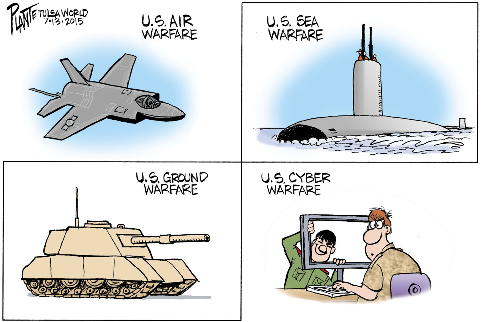 Tags/Keywords cyber war, cyber warfare, F-35, internet, Los-Angeles class fast attack submarine, M-1 tank, Modern Warfare, FILE: PlantB20150714 Reprint This CartoonBuy A PrintBuy The Original REPRINT THIS CARTOON Fill out the info below and I'll be in touch ASAP Your Name (required) Your Email (required) Details, Print, Digital, Circulation, etc. Please leave this field empty. BUY A PRINT OF THIS CARTOON Fill out the info below and I'll be in touch ASAP Your Name(required) Your Email(required) Details, Number of copies, Questions. Please leave this field empty. BUY THE ORIGINAL Originals may or may not be available. Fill out the info below and I'll be in touch ASAP Your Name (required) Your Email (required) Your Message Please leave this field empty.