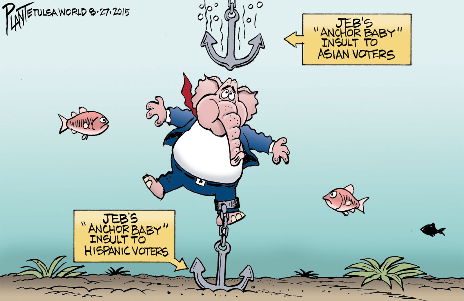 Tags/Keywords Asian voters, Campaign 2016, GOP, Governor Jeb Bush, Hispanic voters, Jeb Bush and Anchor Babies, Presidential campaign 2016, Republican National Committee, Republican Party, RNC, FILE: PlantB20150828 Reprint This CartoonBuy A PrintBuy The Original REPRINT THIS CARTOON Fill out the info below and I'll be in touch ASAP Your Name (required) Your Email (required) Details, Print, Digital, Circulation, etc. Please leave this field empty. BUY A PRINT OF THIS CARTOON Fill out the info below and I'll be in touch ASAP Your Name(required) Your Email(required) Details, Number of copies, Questions. Please leave this field empty. BUY THE ORIGINAL Originals may or may not be available. Fill out the info below and I'll be in touch ASAP Your Name (required) Your Email (required) Your Message Please leave this field empty.
