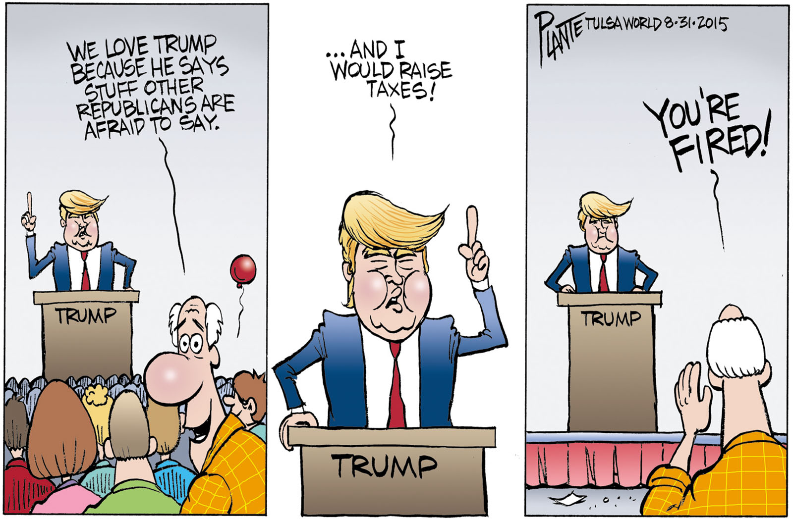 Tags/Keywords Donald Trump, GOP, Presidential campaign 2016, Republican Party, RNC, Taxes, We love Trump, FILE: PlantB20150901 Reprint This CartoonBuy A PrintBuy The Original REPRINT THIS CARTOON Fill out the info below and I'll be in touch ASAP Your Name (required) Your Email (required) Details, Print, Digital, Circulation, etc. Please leave this field empty. BUY A PRINT OF THIS CARTOON Fill out the info below and I'll be in touch ASAP Your Name(required) Your Email(required) Details, Number of copies, Questions. Please leave this field empty. BUY THE ORIGINAL Originals may or may not be available. Fill out the info below and I'll be in touch ASAP Your Name (required) Your Email (required) Your Message Please leave this field empty.