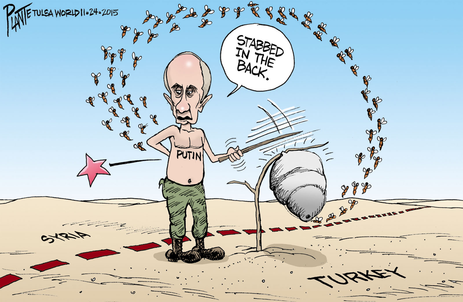 Tags/Keywords Middle East, President Bashar al-Assad of Syria, President Recep Tayyip Erdogan of Turkey, Putin and Turkey, Russian President Vladimir Putin, Syria, FILE: PlantB20151125 Reprint This CartoonBuy A PrintBuy The Original REPRINT THIS CARTOON Fill out the info below and I'll be in touch ASAP Your Name (required) Your Email (required) Details, Print, Digital, Circulation, etc. Please leave this field empty. BUY A PRINT OF THIS CARTOON Fill out the info below and I'll be in touch ASAP Your Name(required) Your Email(required) Details, Number of copies, Questions. Please leave this field empty. BUY THE ORIGINAL Originals may or may not be available. Fill out the info below and I'll be in touch ASAP Your Name (required) Your Email (required) Your Message Please leave this field empty.