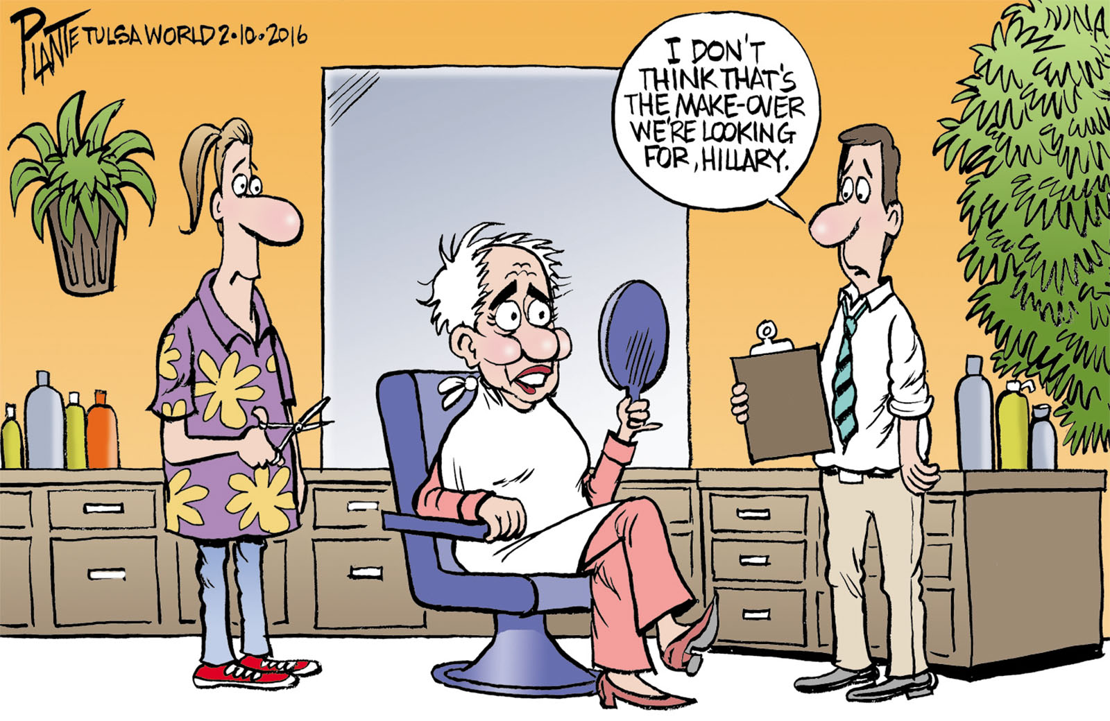Tags/Keywords Campaign 2016, Democratic Party, Democratic Presidential Primary 2016, DNC, Hillary's make-over, New Hampshire, reset, Secretary Hillary Clinton, Senator Bernie Sanders, FILE: PlantB20160211 Reprint This CartoonBuy A PrintBuy The Original REPRINT THIS CARTOON Fill out the info below and I'll be in touch ASAP Your Name (required) Your Email (required) Details, Print, Digital, Circulation, etc. Please leave this field empty. BUY A PRINT OF THIS CARTOON Fill out the info below and I'll be in touch ASAP Your Name(required) Your Email(required) Details, Number of copies, Questions. Please leave this field empty. BUY THE ORIGINAL Originals may or may not be available. Fill out the info below and I'll be in touch ASAP Your Name (required) Your Email (required) Your Message Please leave this field empty.