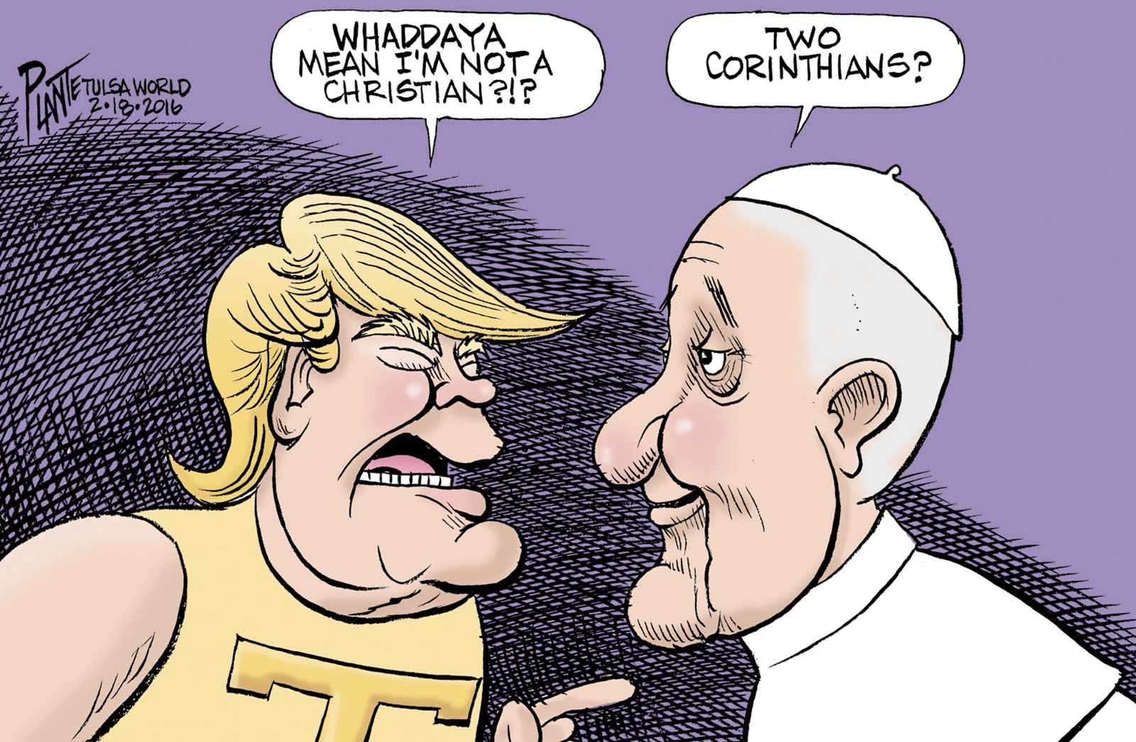 Tags/Keywords GOP, II Corinthians, Mexico wall, Pope Francis, Presidential Candidate Donald J. Trump, Republican PrimaryCampaign 2016, RNC, Trump vs. The Pope, FILE: PlantB20160219 Reprint This CartoonBuy A PrintBuy The Original REPRINT THIS CARTOON Fill out the info below and I'll be in touch ASAP Your Name (required) Your Email (required) Details, Print, Digital, Circulation, etc. Please leave this field empty. BUY A PRINT OF THIS CARTOON Fill out the info below and I'll be in touch ASAP Your Name(required) Your Email(required) Details, Number of copies, Questions. Please leave this field empty. BUY THE ORIGINAL Originals may or may not be available. Fill out the info below and I'll be in touch ASAP Your Name (required) Your Email (required) Your Message Please leave this field empty.