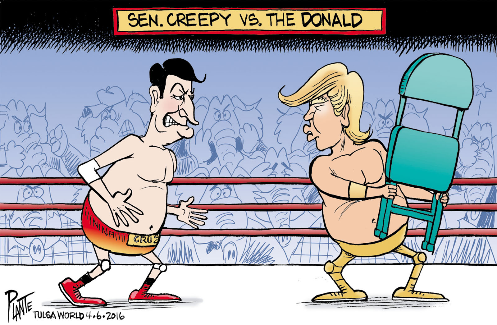 Tags/Keywords Campaign 2016, Cruz vs. Trump in the Battle Royale, Donald J. Trump, GOP, Republican Party, Republican Presidential Primary 2016, RNC, Senator Ted Cruz, WWF, FILE: PlantB20160409 Reprint This CartoonBuy A PrintBuy The Original REPRINT THIS CARTOON Fill out the info below and I'll be in touch ASAP Your Name (required) Your Email (required) Details, Print, Digital, Circulation, etc. Please leave this field empty. BUY A PRINT OF THIS CARTOON Fill out the info below and I'll be in touch ASAP Your Name(required) Your Email(required) Details, Number of copies, Questions. Please leave this field empty. BUY THE ORIGINAL Originals may or may not be available. Fill out the info below and I'll be in touch ASAP Your Name (required) Your Email (required) Your Message Please leave this field empty.