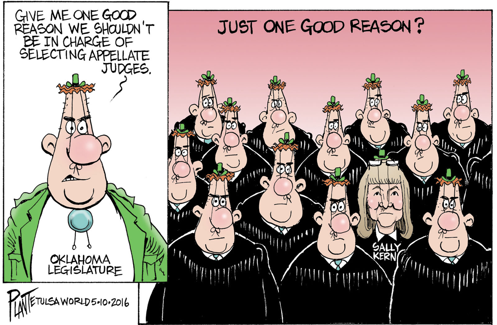 Tags/Keywords House Bill 3162, Judicial Nominating Commission, OK, Oklahoma House, Oklahoma Legislature's judges, Oklahoma Senate, Speaker of the House Jeff Hickman, FILE: PlantB20160511 Reprint This CartoonBuy A PrintBuy The Original REPRINT THIS CARTOON Fill out the info below and I'll be in touch ASAP Your Name (required) Your Email (required) Details, Print, Digital, Circulation, etc. Please leave this field empty. BUY A PRINT OF THIS CARTOON Fill out the info below and I'll be in touch ASAP Your Name(required) Your Email(required) Details, Number of copies, Questions. Please leave this field empty. BUY THE ORIGINAL Originals may or may not be available. Fill out the info below and I'll be in touch ASAP Your Name (required) Your Email (required) Your Message Please leave this field empty.
